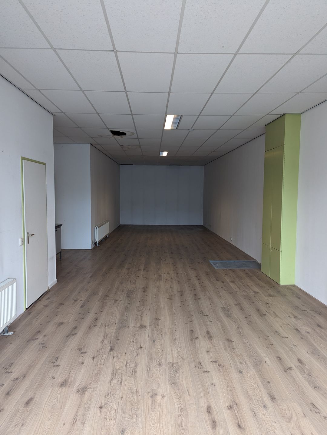 De ruimte bevindt zich op de begane grond is ongeveer 16 meter lang en 4,5 meter breed met nog een kleine opslag en wc voor een totaal van ongeveer 75m2.