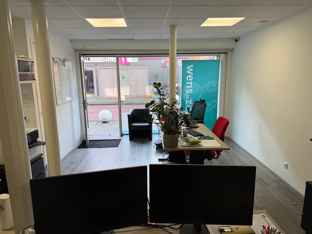 Via de entree betreed je direct de winkelruimte, die is voorzien van een aparte spreekkamer/kantoorruimte. Aan de achterzijde bevindt zich een ruime pantry met een separate toiletruimte.