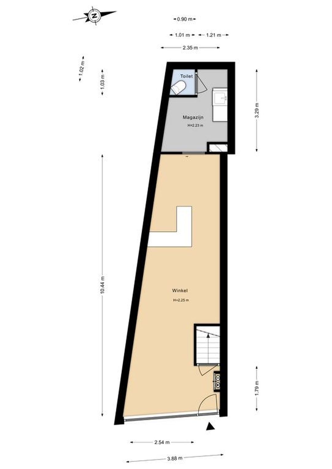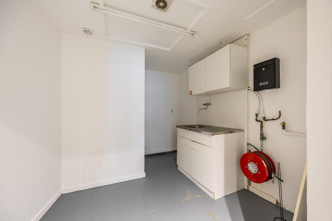 De winkelruimte met een totale oppervlakte van circa 40 m² biedt volop mogelijkheden voor uiteenlopende vormen van gebruik. De verkoopruimte beslaat ca. 33 m² en het magazijn, pantry en toilet ca. 7 m².