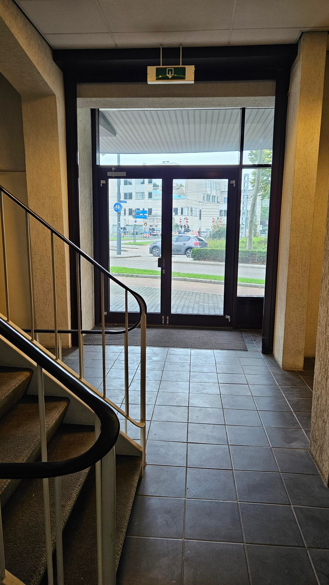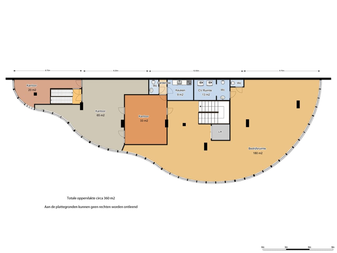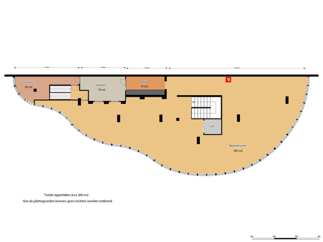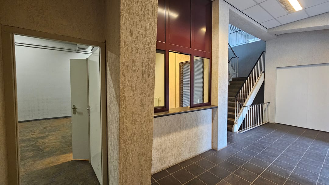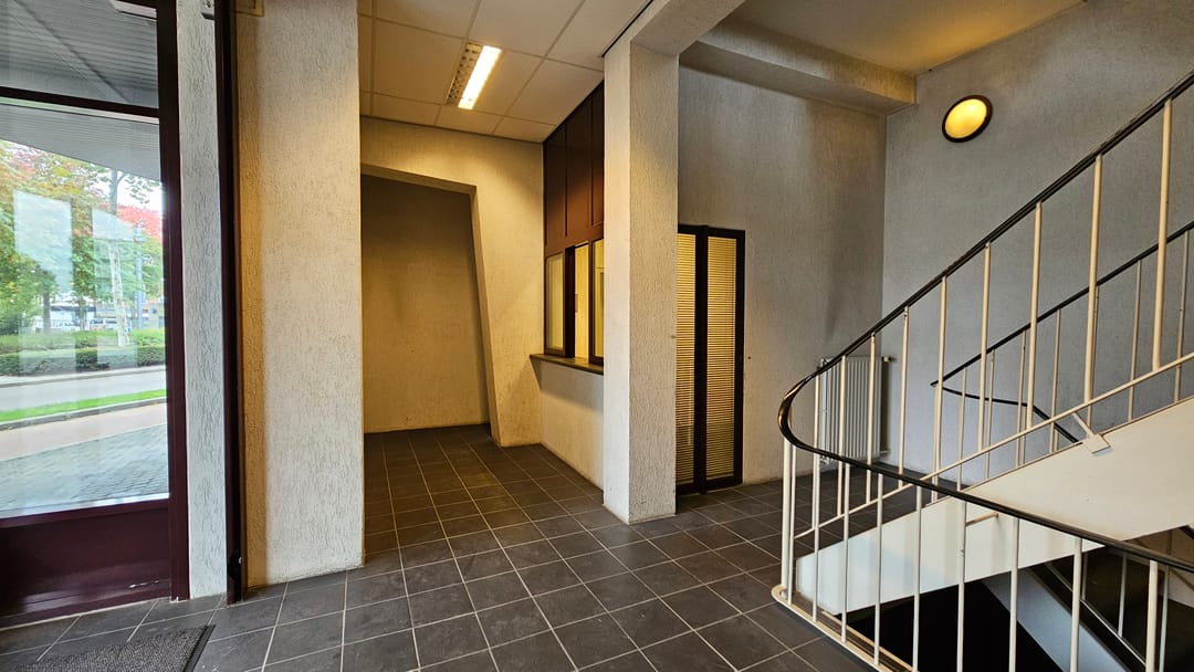 Circa 360 m² commerciële ruimte, bereikbaar via de trapopgang in de ontvangsthal.