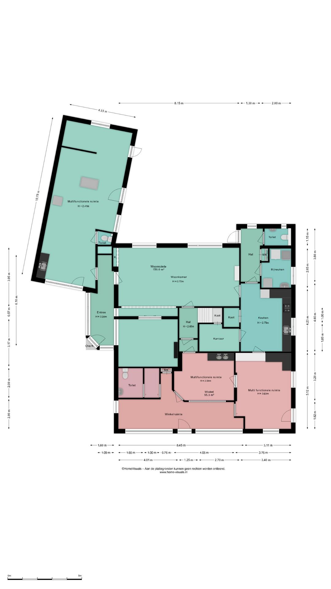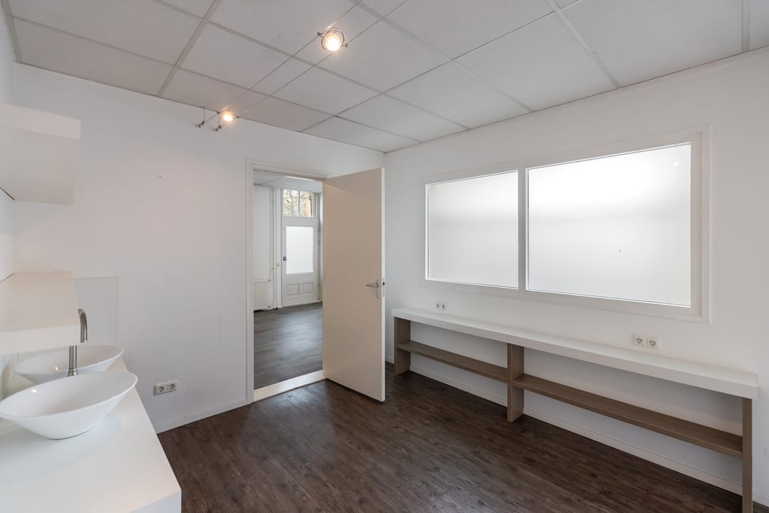 Entree; winkel-/ontvangstruimte met veel raampartijen in de voorgevel, twee behandel-/multifunctionele ruimtes en een (invalide) toiletruimte. Afzonderlijke meterkast, zelfstandige cv-installatie en airco.