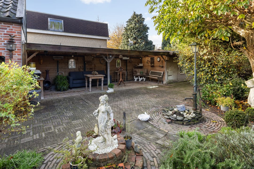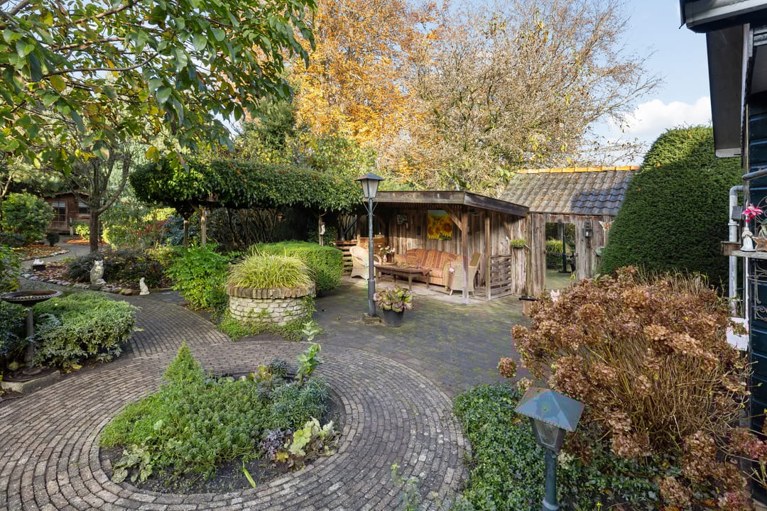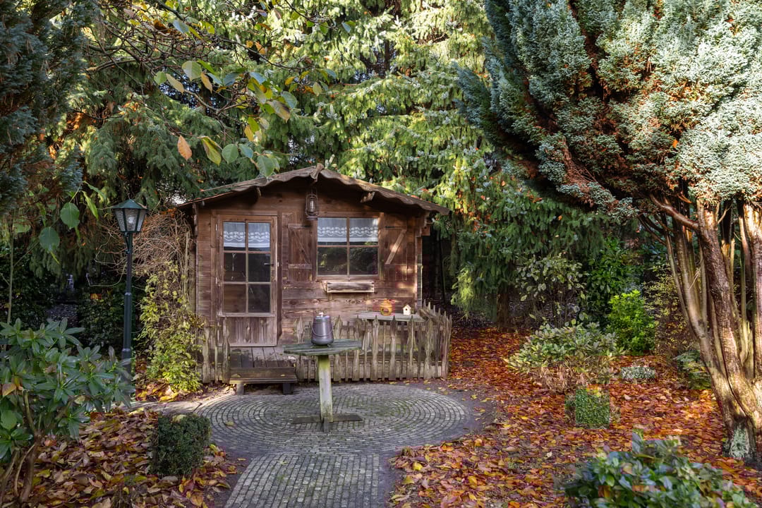 - Overkapping in de achtertuin, tuinhuisje en vrijstaande schuur.