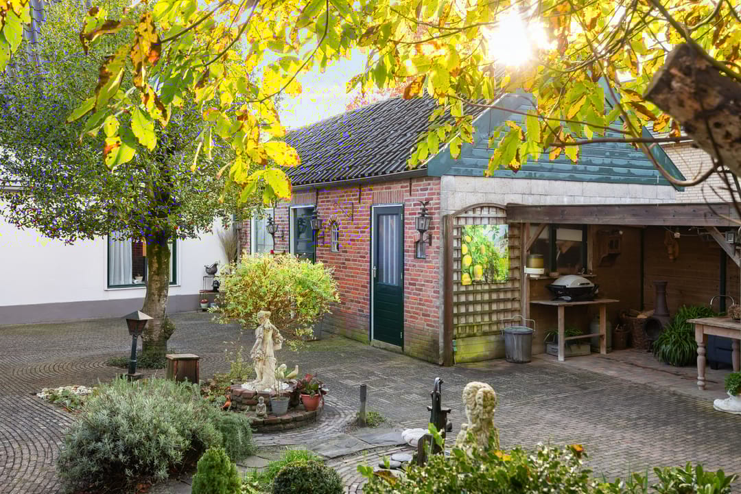 Vanuit de woning is er directe toegang tot een aangebouwde schuur met een bijzonder verhaal. Deze schuur deed in 1937 dienst als smederij onder de naam "Gouden Emmer”, genoemd naar de bronskleurige emmer die ooit de voorgevel sierde. Deze historische naam leeft voort in het dorp en werd later zelfs overgenomen door een basisschool.