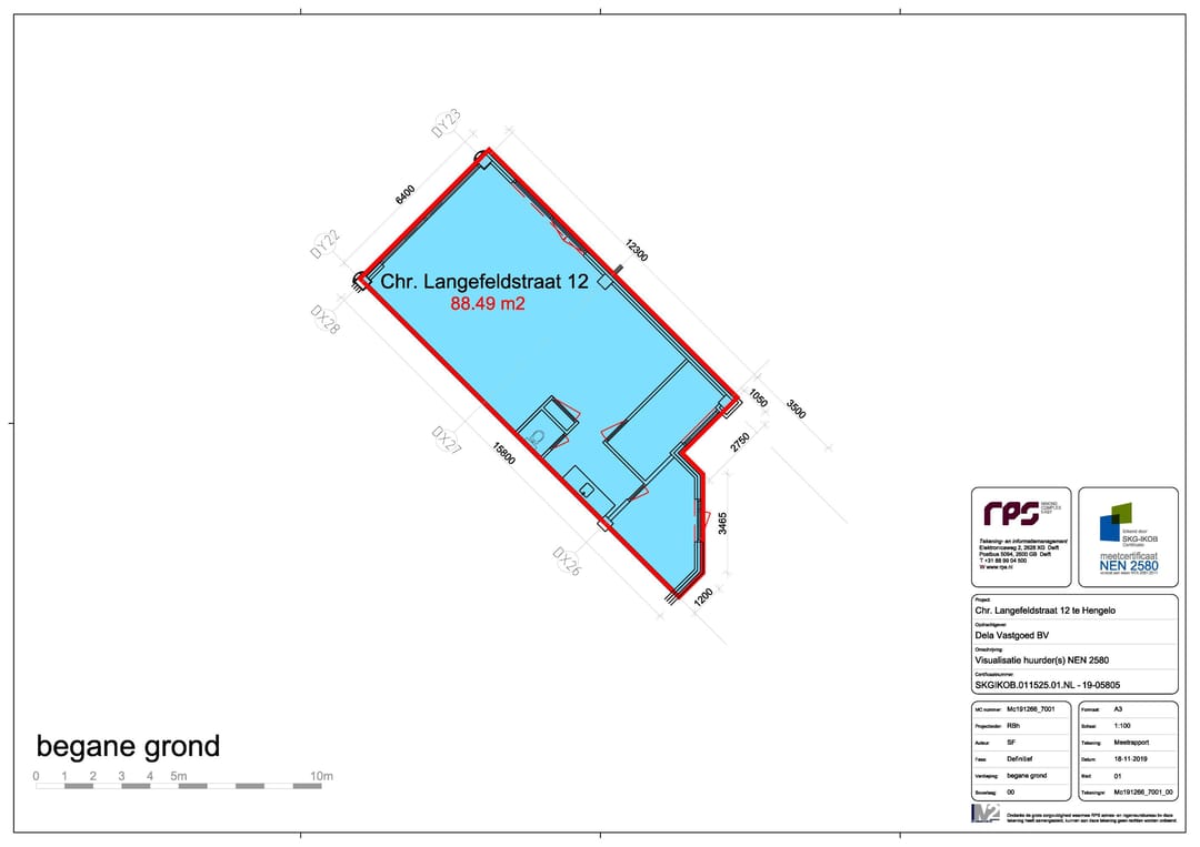 De oppervlakten zijn gemeten door verhurend makelaar uit een kopie bouwtekening. Het opgegeven metrage is derhalve indicatief; er kunnen geen rechten aan worden ontleend noch kan er sprake zijn van enige verrekening achteraf.