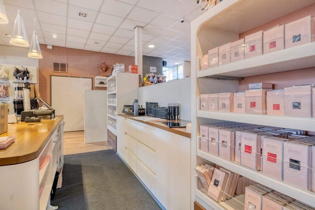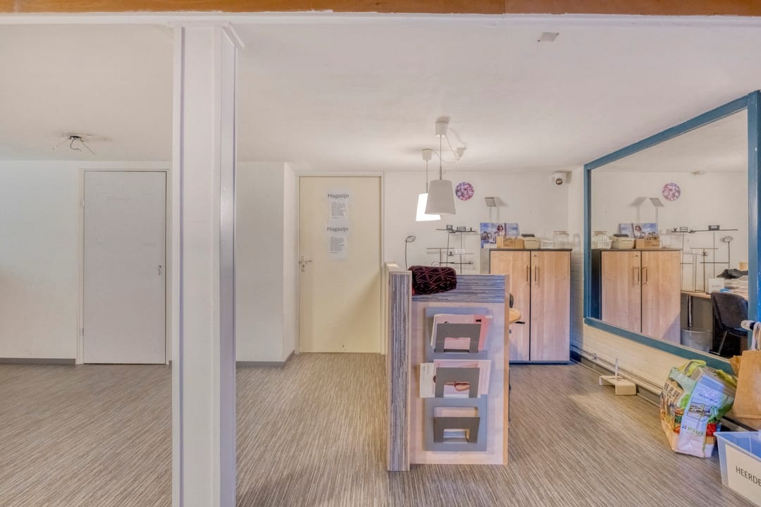 De winkelruimte beschikt over een royale gevelbreedte van maar liefst 9,50 meter, ideaal voor een opvallende etalagepresentatie. Het verkoopoppervlak bedraagt ca. 226 m² en is volledig gesitueerd op de begane grond. Het achterste gedeelte is iets verhoogd (vier treden), wat zorgt voor een speels en onderscheidend effect in de winkelruimte.