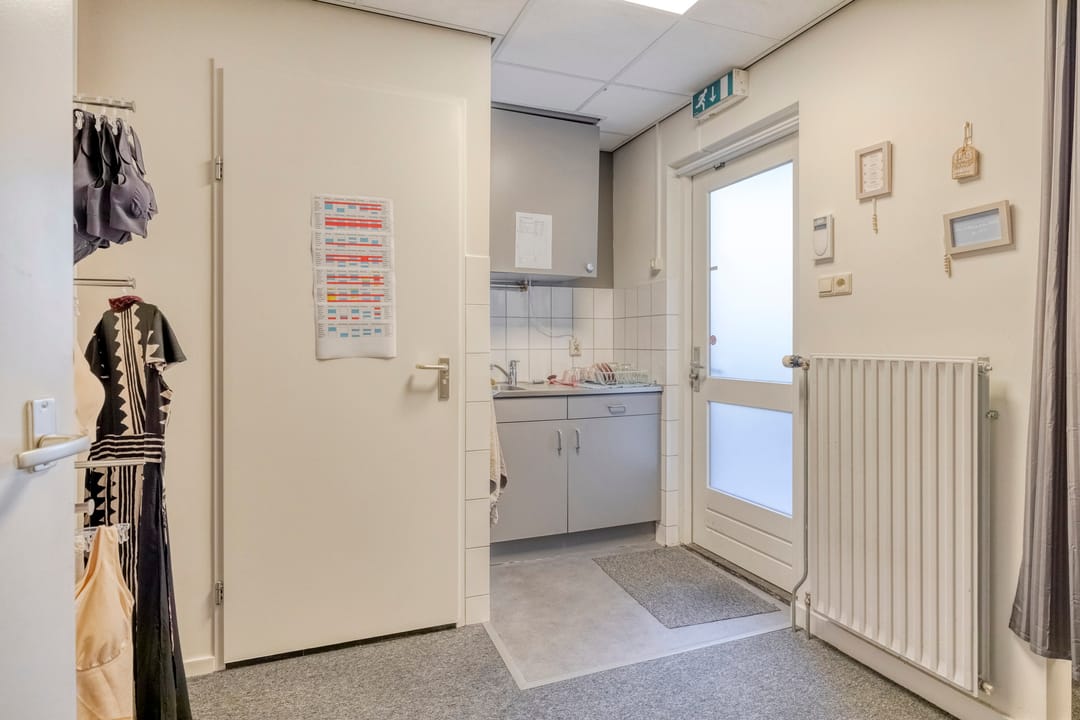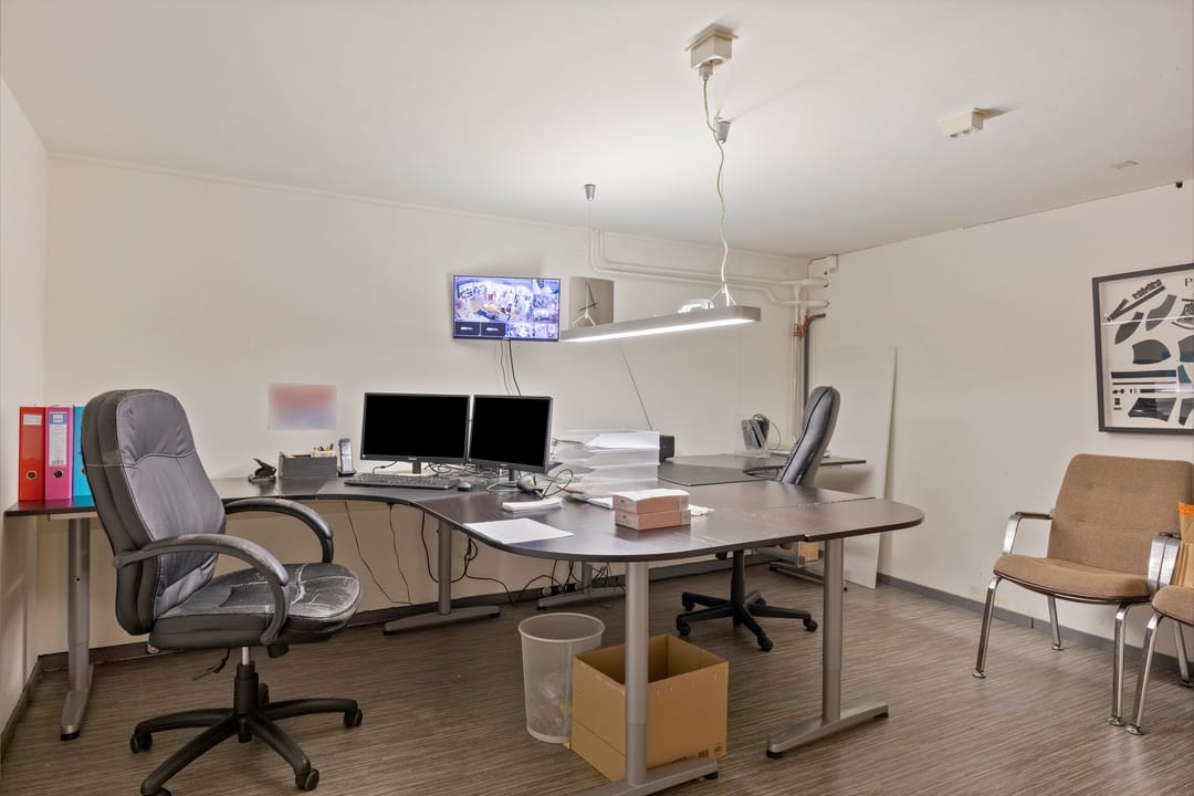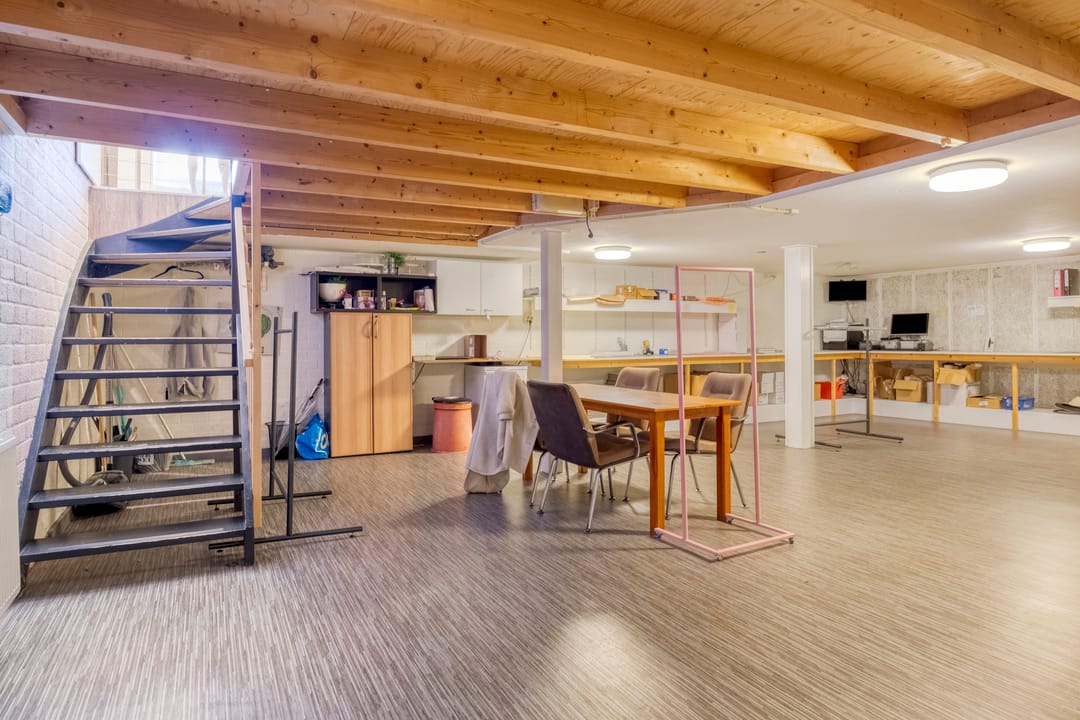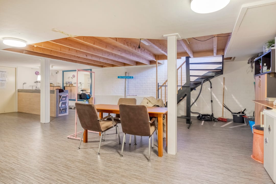 Daarnaast bevinden zich op de begane grond een kleine kantine met pantry en toilet, evenals een praktische opslagruimte van ca.17 m².