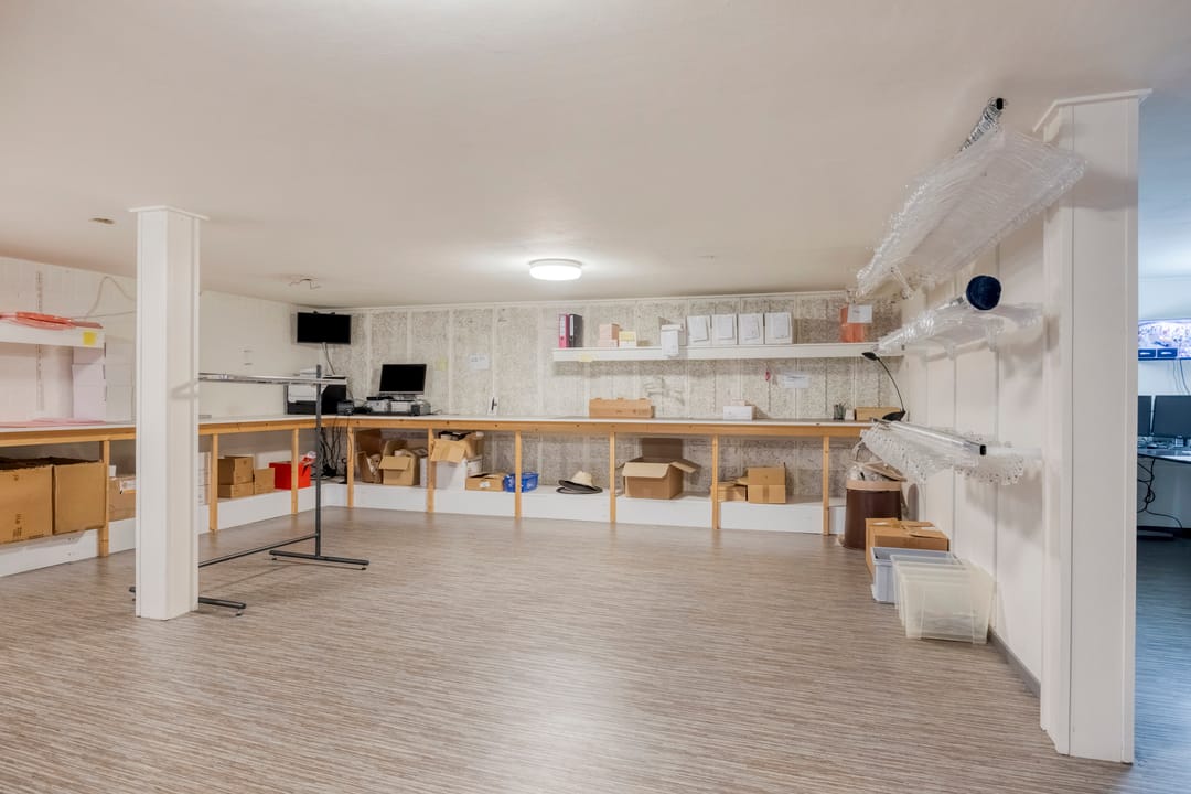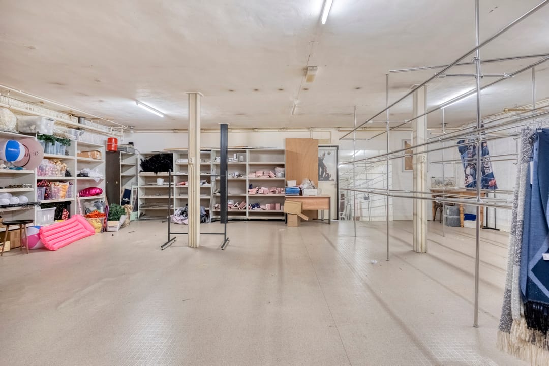 De winkel is volledig onderkelderd en onderverdeeld in twee delen: