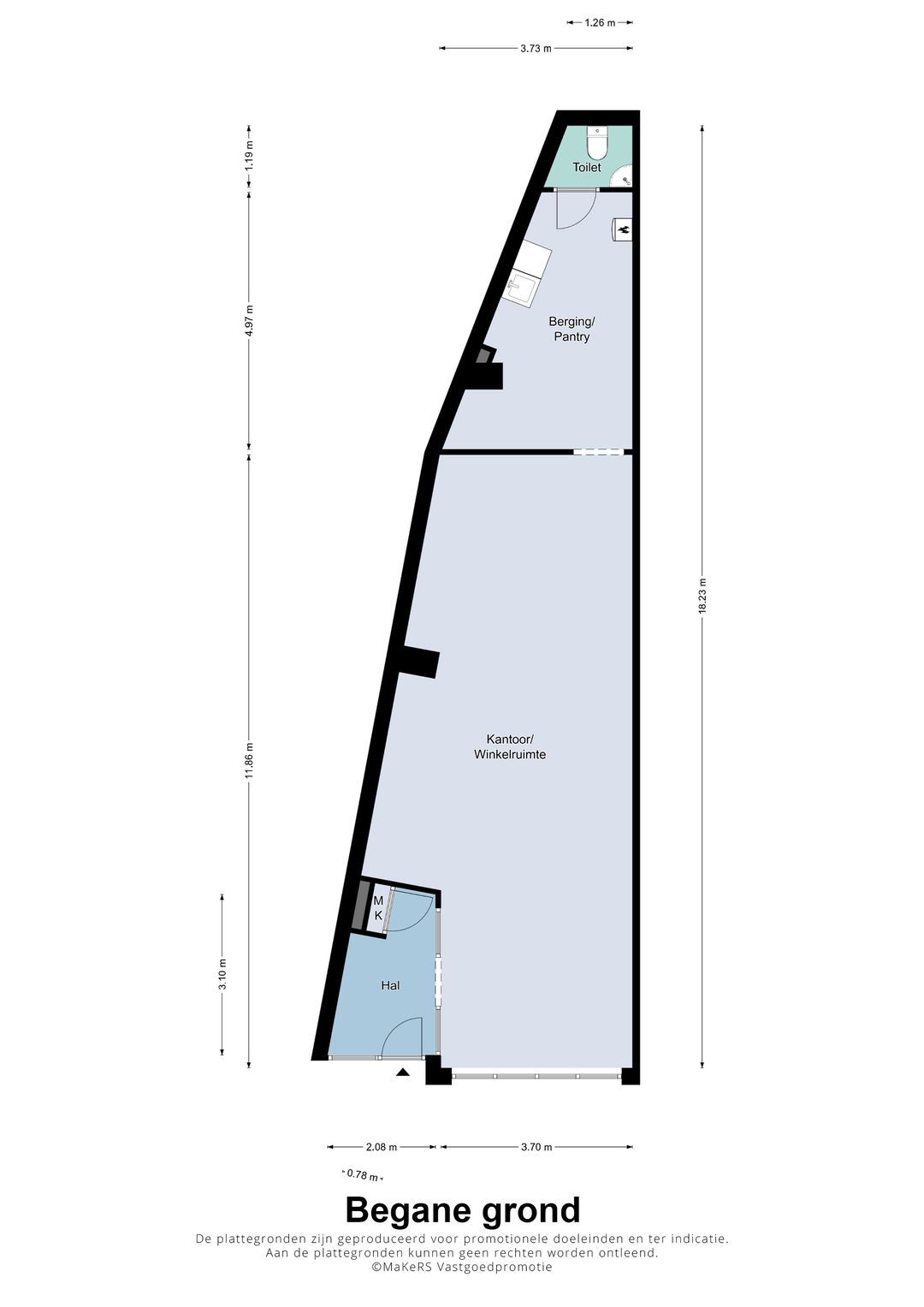 De commerciele ruimte heeft een ruime bestemming.