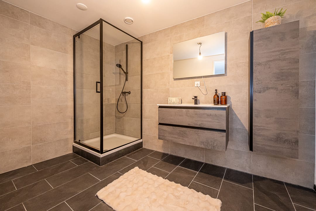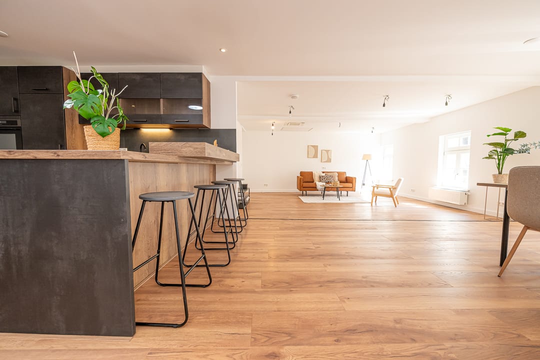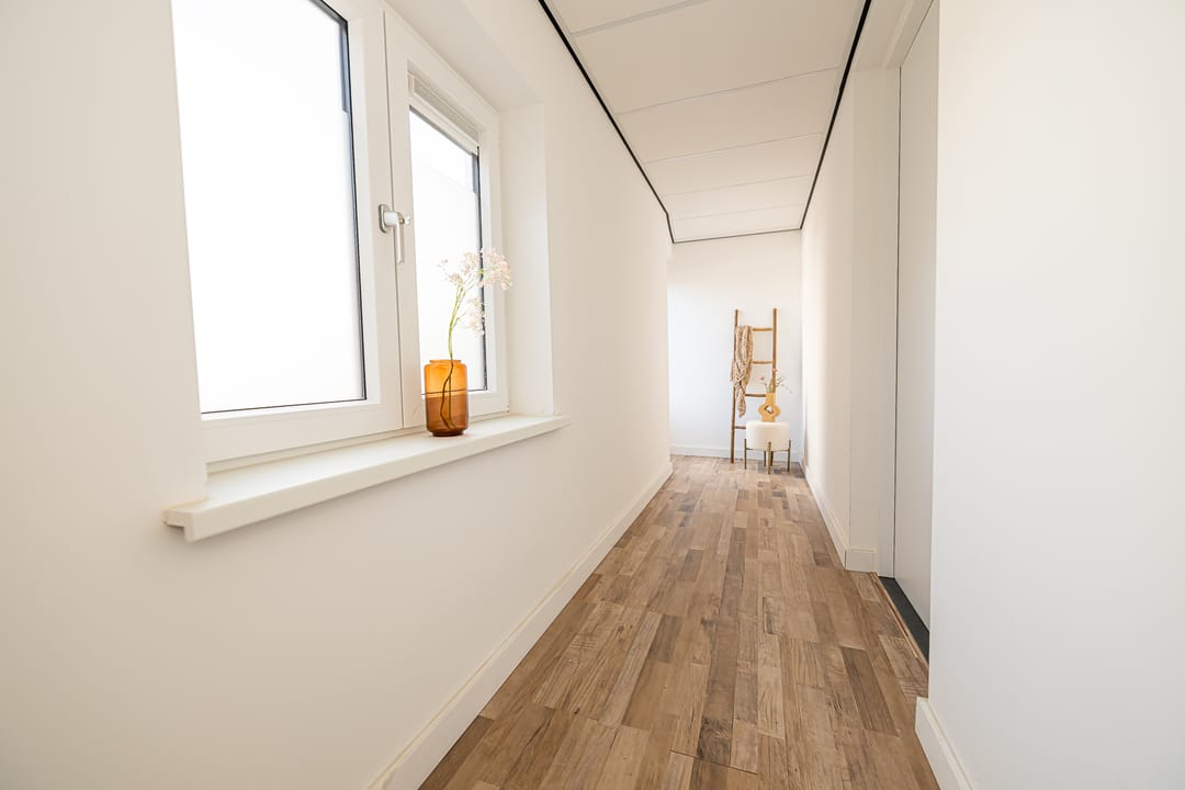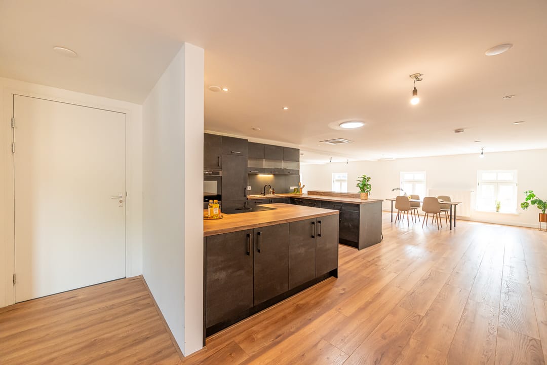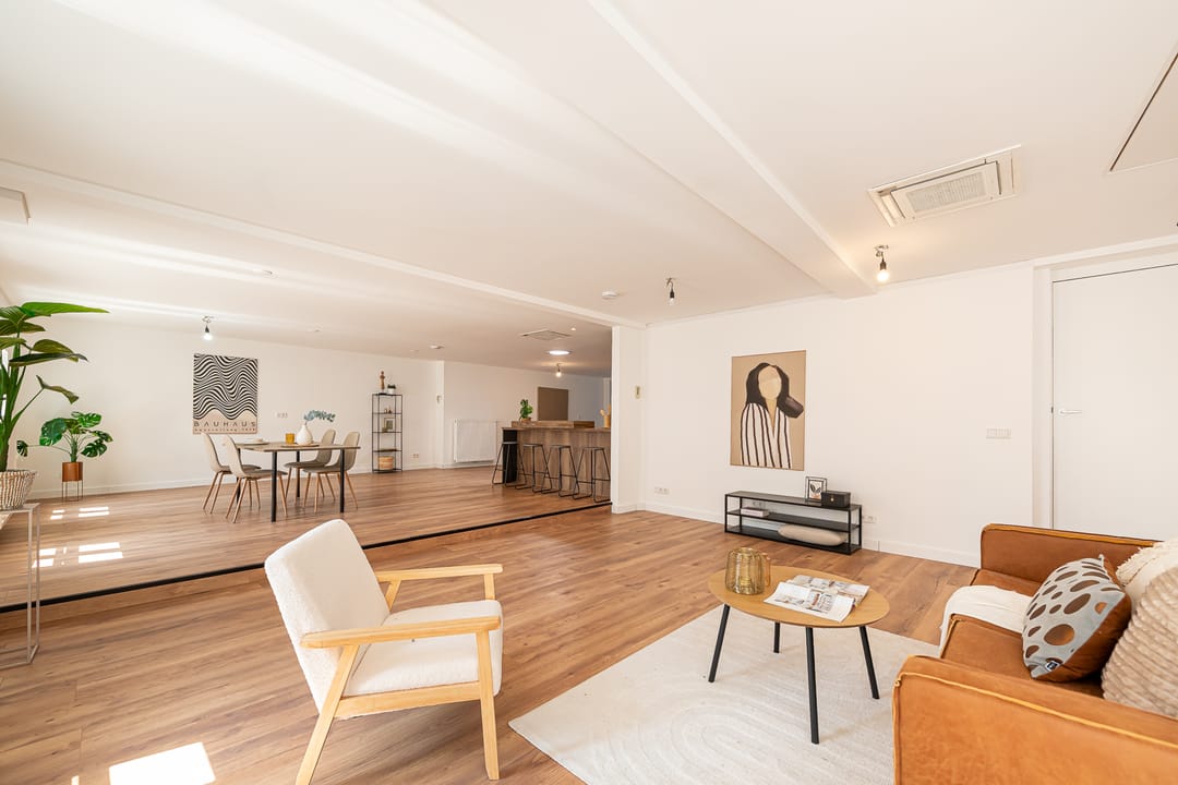 Appartement 2d (ca. 200 m² GBO) op de eerste verdieping is ruim opgezet en bereikbaar via een eigen opgang tussen de winkelruimtes. De brede trapopgang tussen de winkels is ruim genoeg voor het plaatsen van een traplift, waardoor het appartement ook levensloopbestendig gemaakt kan worden. De woning beschikt over twee voordeuren, wat het gebruik flexibel maakt. Binnen is de ruimte praktisch ingedeeld, met een royale woonkamer met airco en open keuken met schiereiland in het midden van het appartement. Aan beide zijden van de woning bevinden zich één of meerdere slaapkamers, elk met toegang tot een eigen badkamer en apart toilet. Deze opzet maakt het appartement niet alleen geschikt voor eigen bewoning, maar ook voor gebruik als meergeneratiewoning. Denk bijvoorbeeld aan een ouder of kind die mee en zelfstandig onder één dak woont, met voldoende privacy en eigen voorzieningen. Ook andere vormen van samenwonen zijn hier goed denkbaar. Het ruime dakterras aan de achterzijde biedt bovendien extra leefruimte buiten. Via een vlizotrap is een ruime bergzolder bereikbaar, ideaal voor extra bergruimte. Deze bovenwoning biedt daarmee niet alleen veel woonoppervlak, maar ook praktische voorzieningen voor dagelijks gebruik. Het appartement heeft een eigen parkeerplaats en een fietsenstalling op de begane grond
