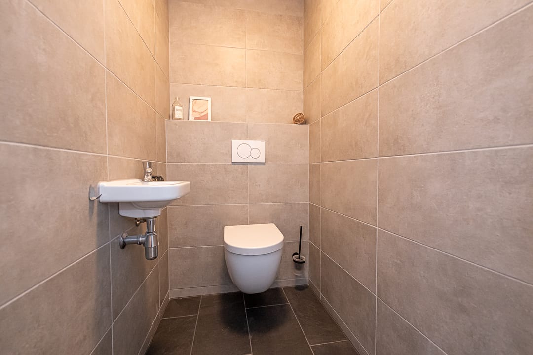 Aan de rechterzijde van het pand ligt de woning 2b van ca. 100 m² (gbo). Deze woning is verhuurd en beschikt over een eigen entree aan de straatzijde. De begane grond is ingedeeld met een hal, een woonkamer, een betegelde keuken, een aparte toiletruimte en een badkamer. Aan de achterzijde ligt een volledig beklinkerde binnenplaats. Op de eerste verdieping bevinden zich twee slaapkamers en een tweede toilet.
