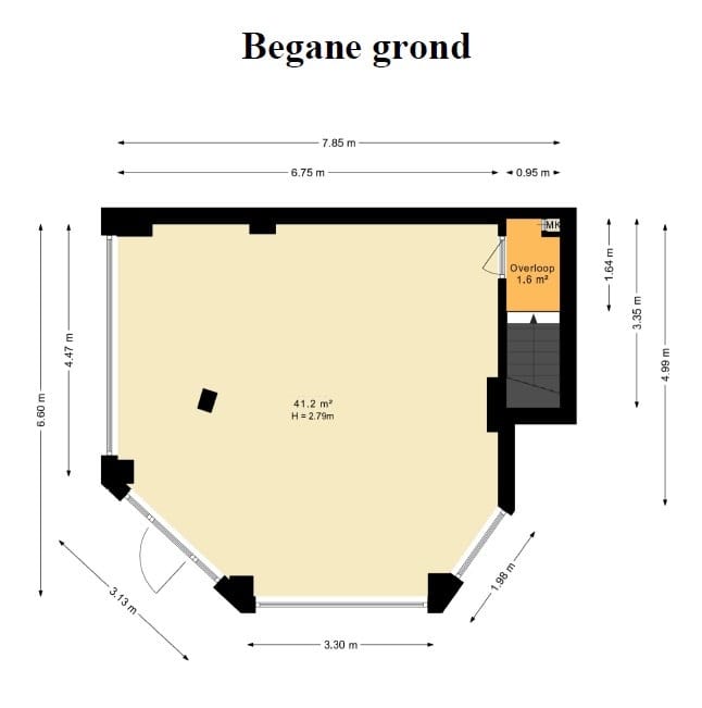 De winkelruimte omvat circa 43 m² VVO op de begane grond en een kelderruimte van circa 39 m² VVO.