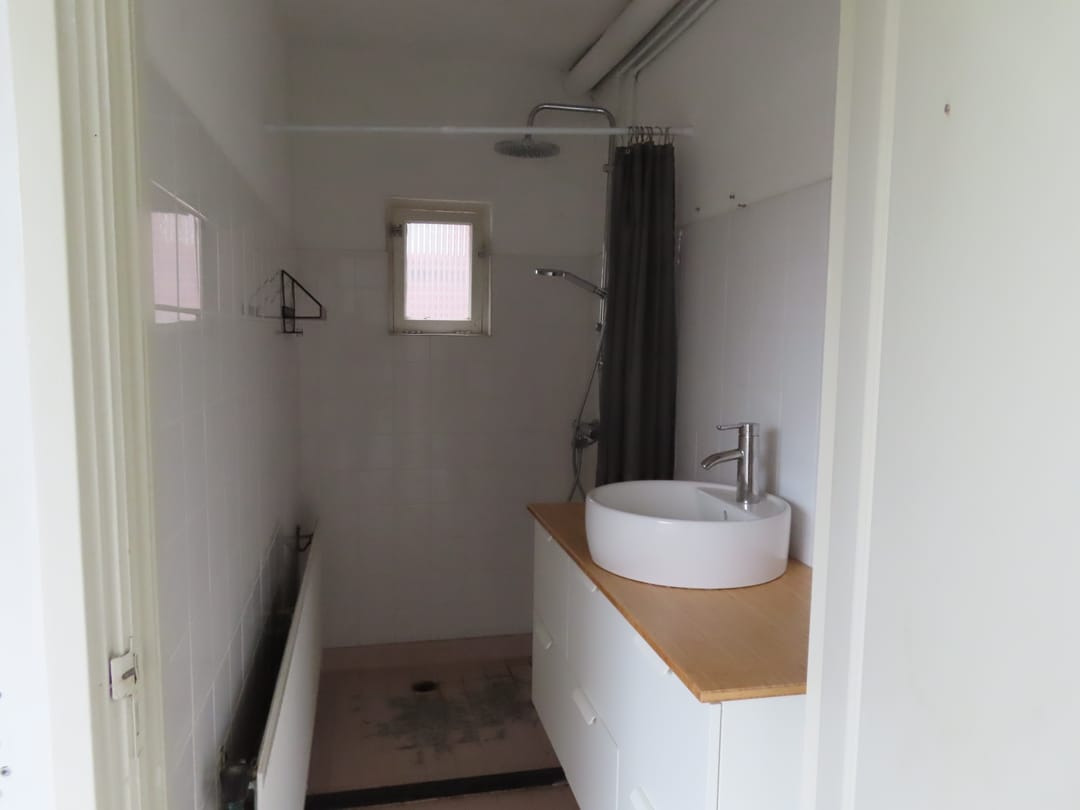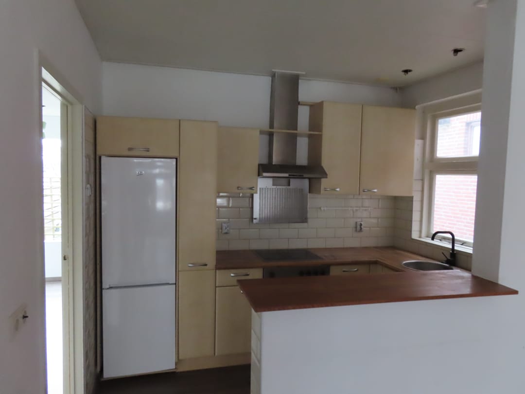 - de vloeroppervlakte van de bovenwoning (twee laags) met dakterras ca. 95 m², als volgt onderverdeeld; hal/entree met trapopgang, toilet, natte ruimte met douche en bad meubel, L-vormige woonkamer met een openkeuken, op de verdieping drie slaapkamers, de zolder is bereikbaar middels een vlizotrap;