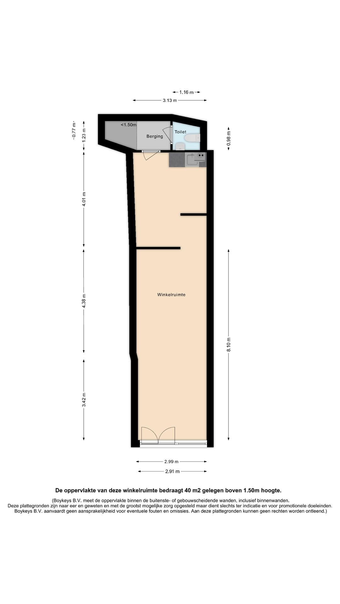 Begane grond: VVO 40 m2 gelegen boven 1.50m hoogte.