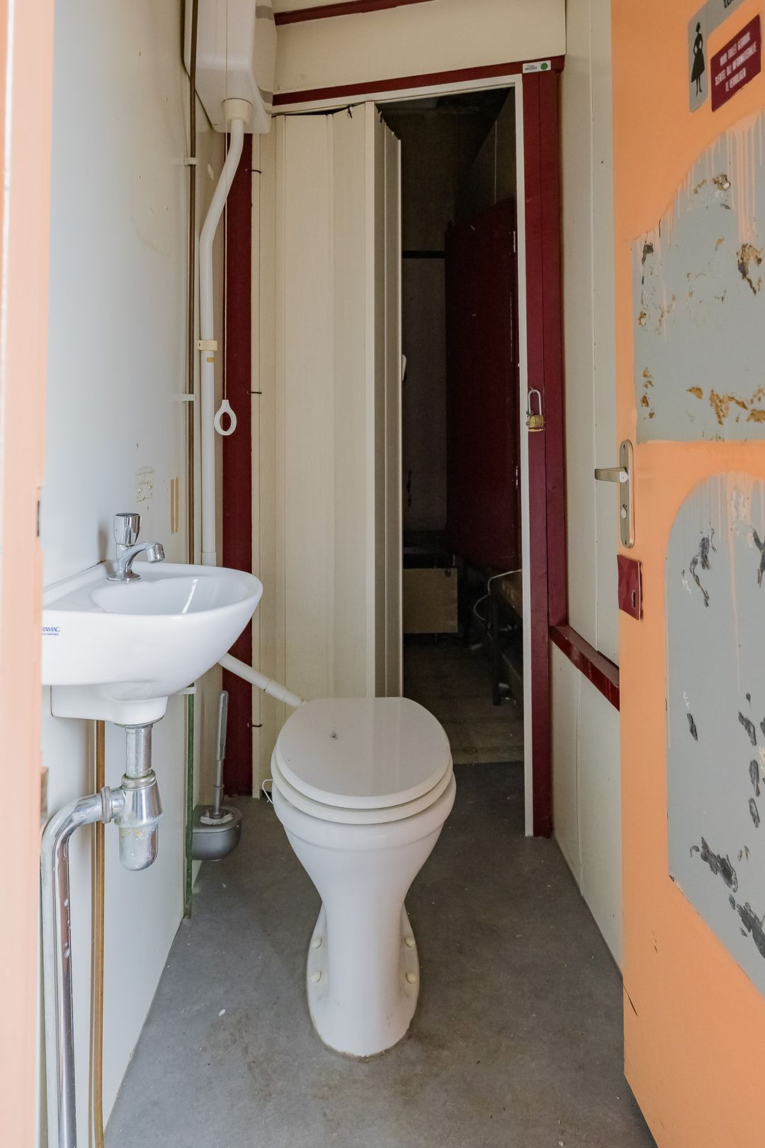 Toegang tot de ruimte aan de voorzijde. Aan de voorzijde bevindt zich een toilet en aan de achterzijde een pantry.
