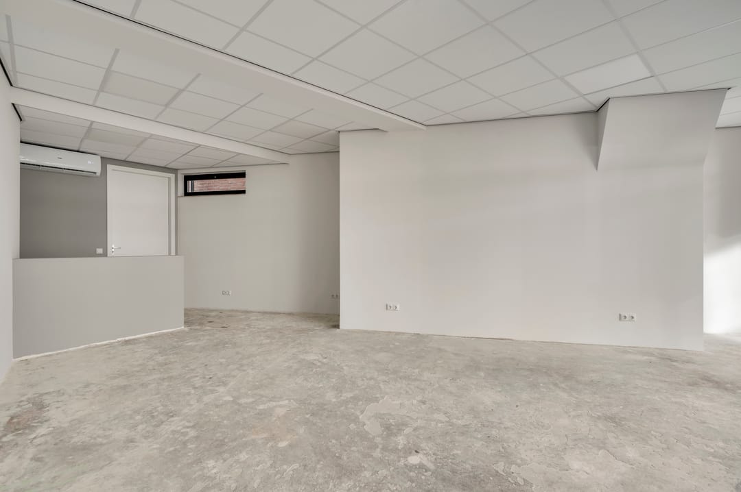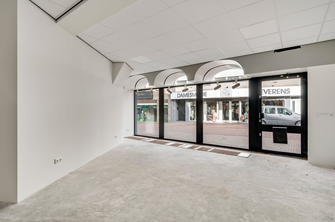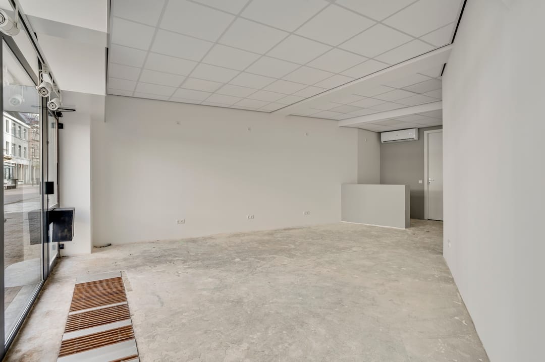 Winkel/bedrijfsruimte: groot ca. 54 m2 met systeemplafond, airco, bergkast onder trap, systeemplafond, frontbreedte ca. 8.5mtr.