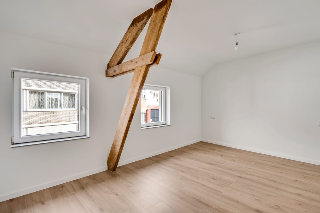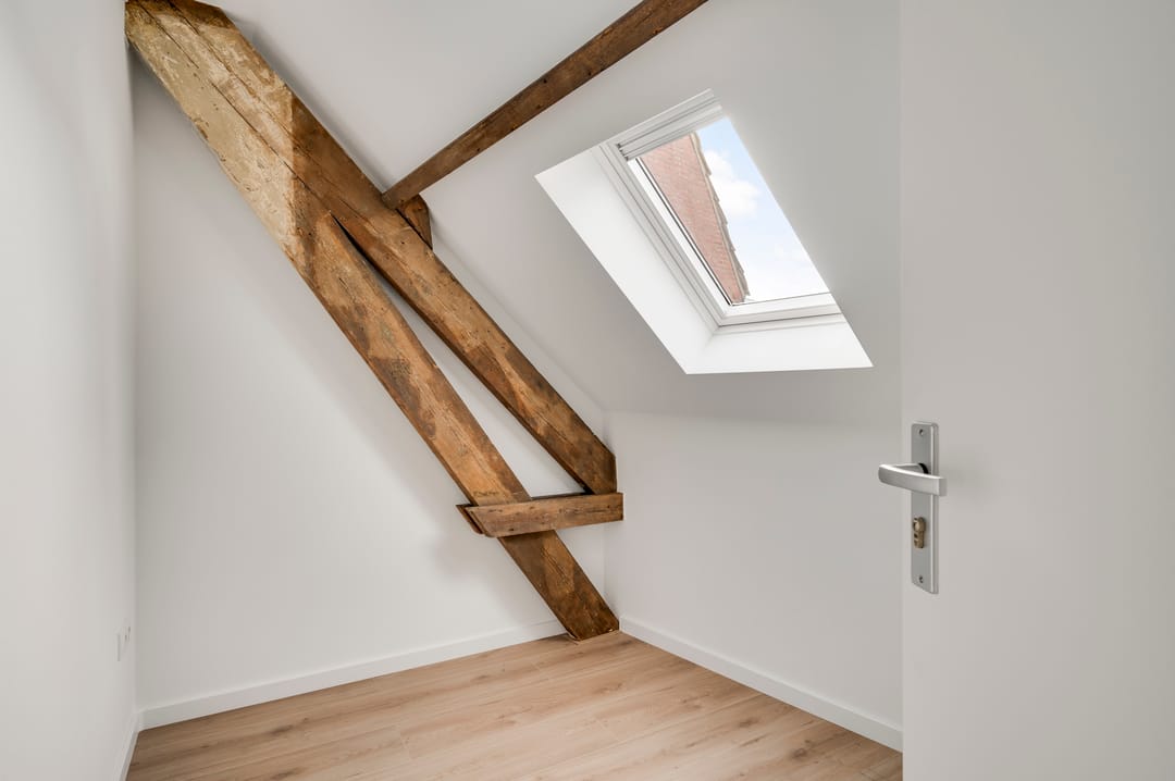 Slaapkamer 2 aan achterzijde met laminaatvloer en veluxdakraam.