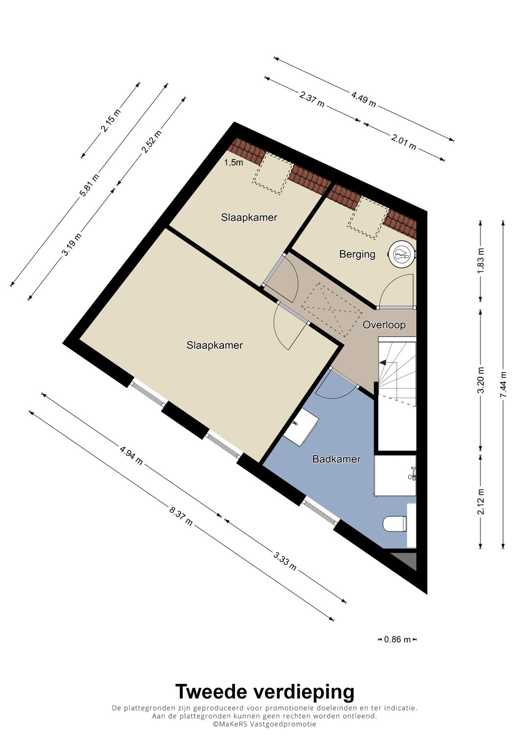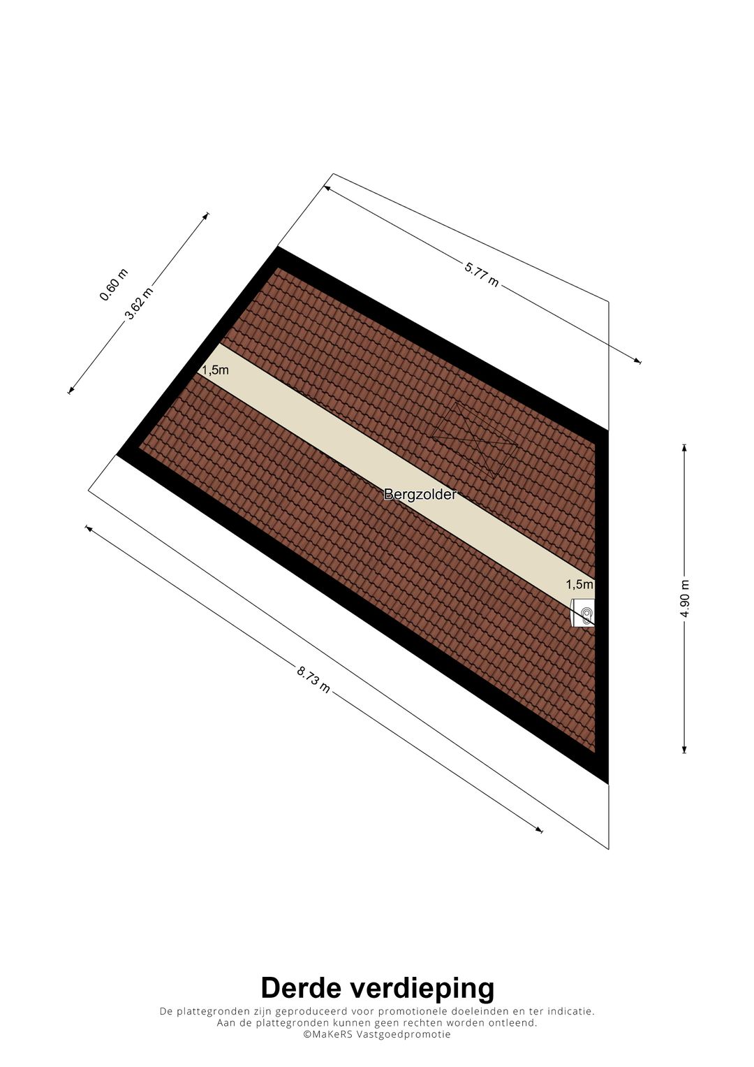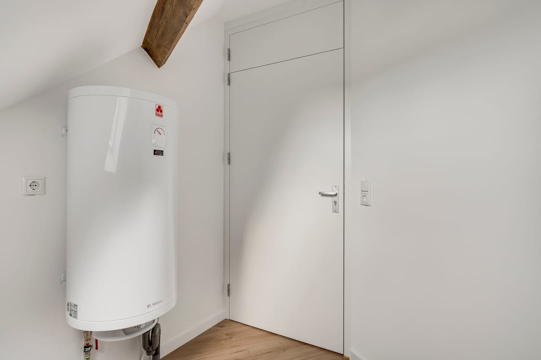 Berging met laminaatvloer, elektra warmwaterboiler (115l), veluxdakraam.