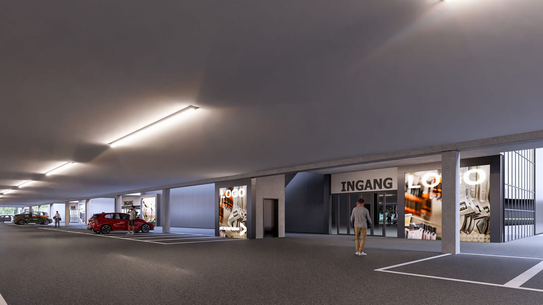 - De winkelruimtes is, net zoals de parkeermogelijkheden, gelegen over twee lagen. Zie hiervoor tevens de plattegronden en impressies.