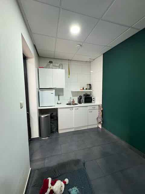 • Eveneens voorzien van moderne afwerking en installaties. Uitgerust met systeemplafond, inbouwarmaturen, airco (split-unit), pantry en toilet