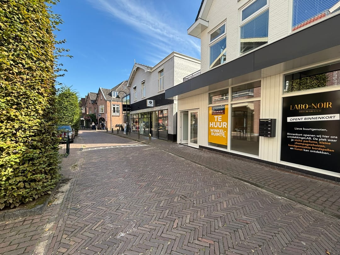 De winkel bevindt zich aan de levendige Nieuweweg, het hart van het winkelgebied van Laren. In de directe omgeving zijn bekende landelijke en lokale retailers gevestigd, waaronder parfumerieën, modezaken, drogisterijen en speciaalzaken. De straat kenmerkt zich door een gevarieerd winkelaanbod en een hoogwaardige uitstraling. De passantenstroom is gegarandeerd dankzij de aanwezigheid van diverse publiekstrekkers en de centrale ligging binnen het winkelgebied.