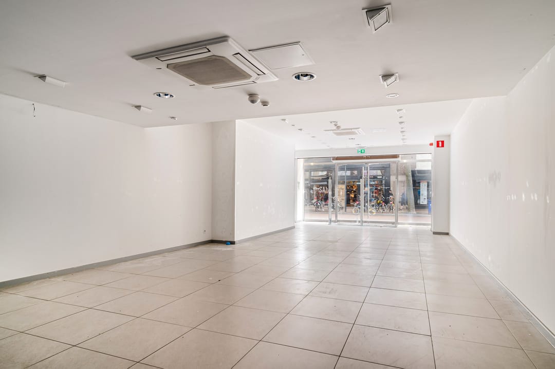De winkelruimte wordt in casco staat verhuurd.