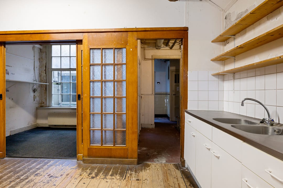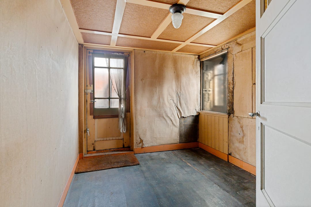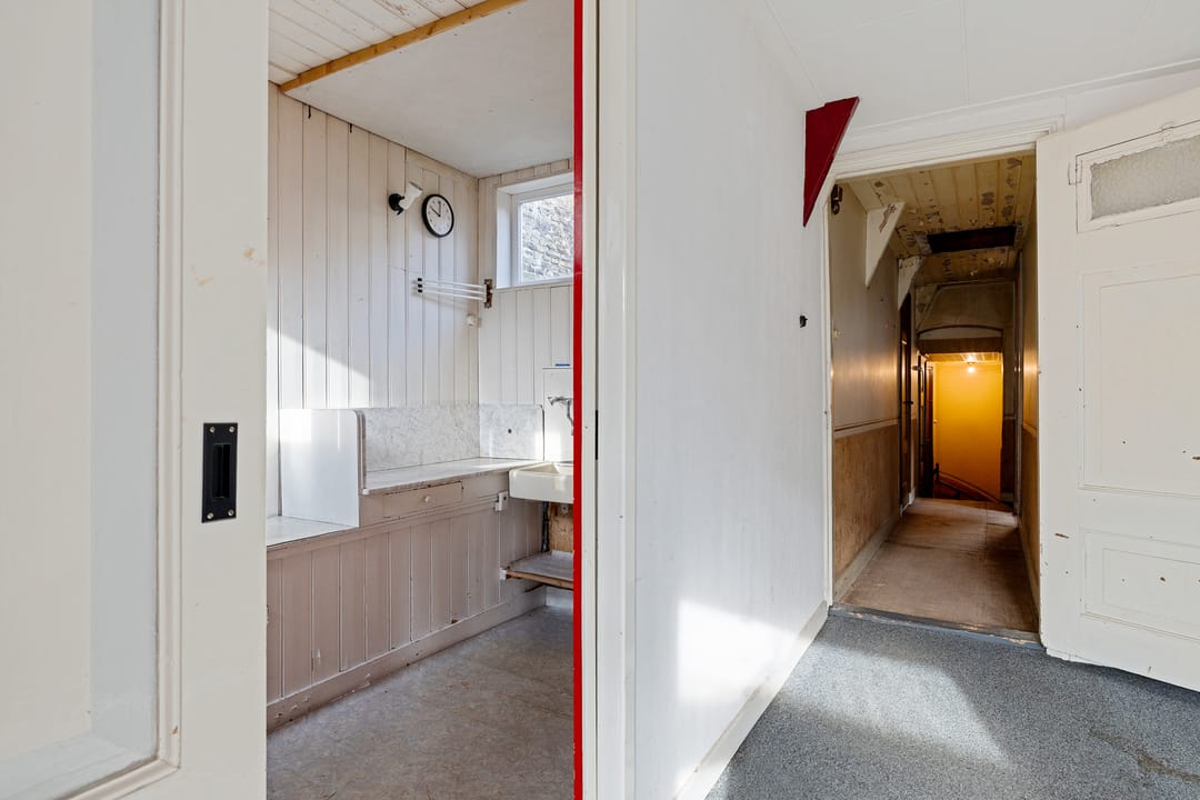 De bovenwoning dient te worden gerenoveerd en gemoderniseerd, maar beschikt nog over diverse authentieke elementen.