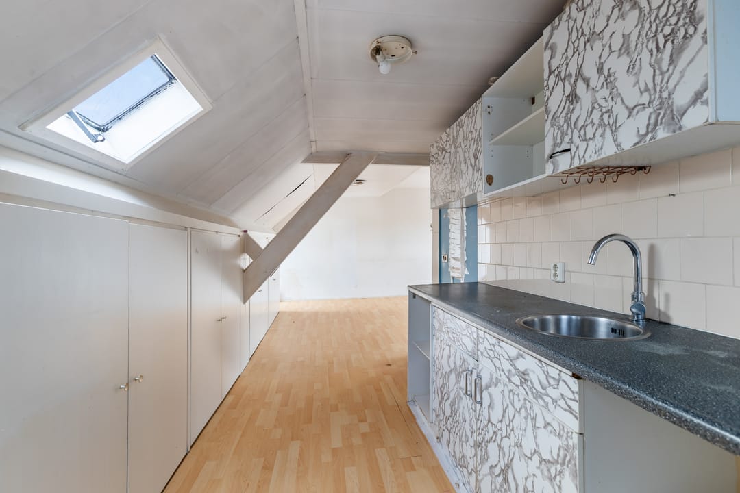 De bovenwoning heeft een eigen toegang via de Westersteeg. Via een buitentrap bereik je het dakterras, dat toegang geeft tot de woning. Binnenkomst is in de woonkamer met open keuken, waar zich ook de opstelling van de cv-ketel bevindt. De woning beschikt verder over een kleine slaapkamer en een compacte badkamer met douchecabine, toilet, wastafel en wasmachineaansluiting.