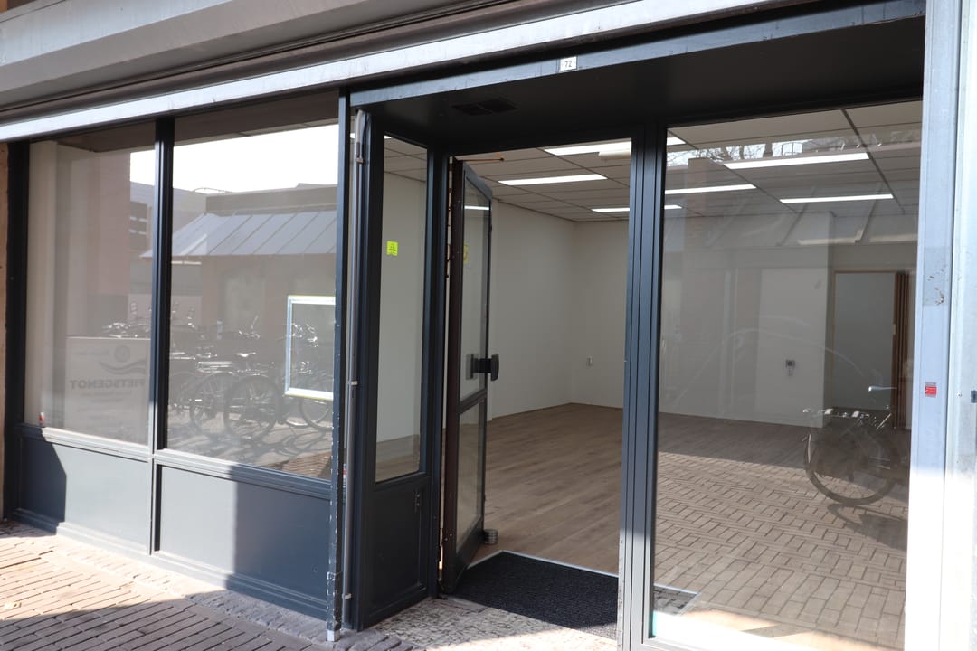 De achterruimte is geschikt voor opslag, kantoor of pantry, waardoor de winkelruimte efficiënt kan worden gebruikt.