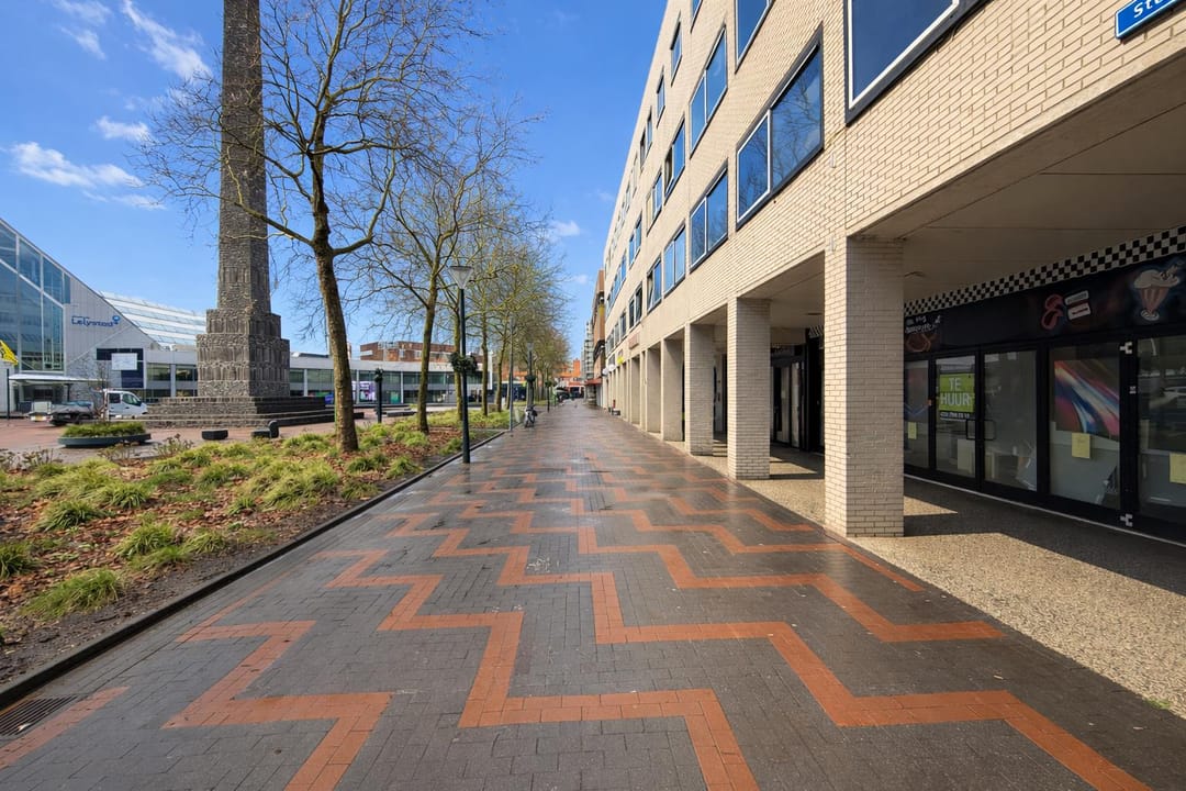 De winkelruimte heeft een totale oppervlakte van circa 176 m² BVO en is gelegen op de begane grond. Door de hoekligging beschikt het object over een frontbreedte van circa 25 meter, wat zorgt voor goede zichtbaarheid vanaf het plein.