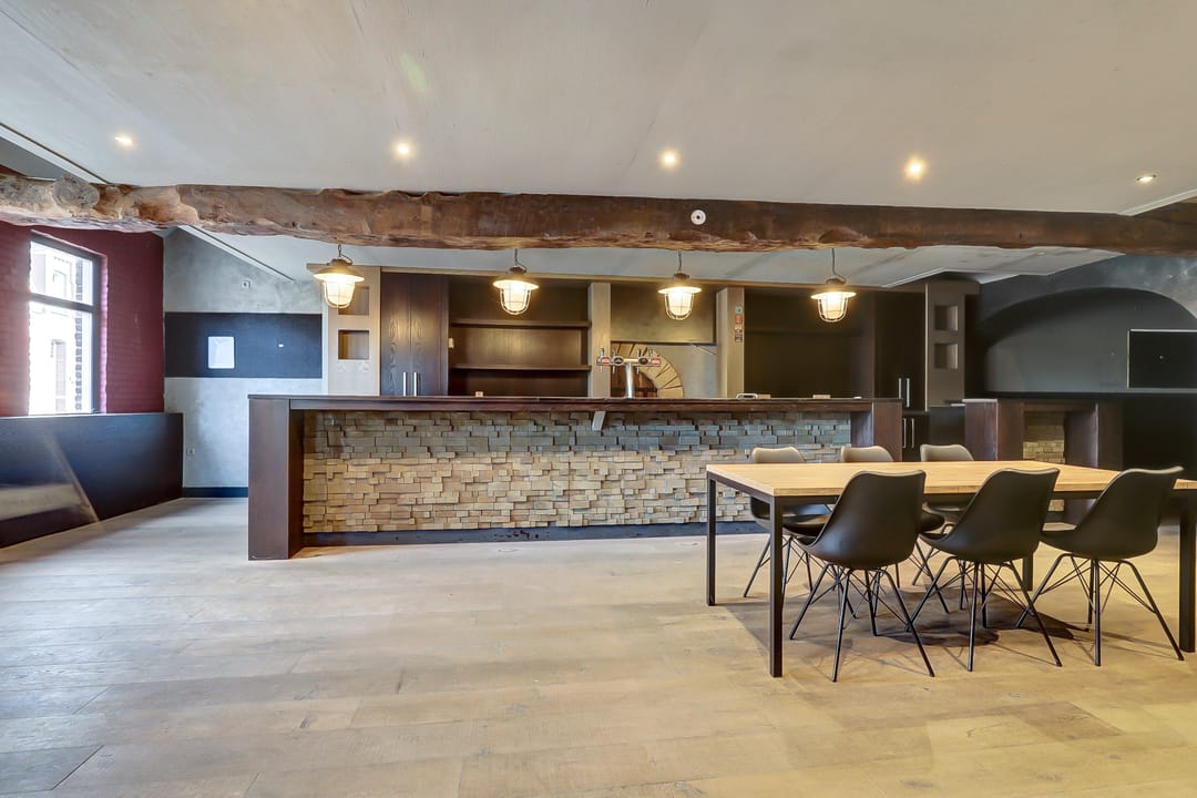 Via de entree aan de voorzijde stap je binnen in een ruim en licht gedeelte dat momenteel is ingericht als horecagelegenheid met bar. Deze open ruimte leent zich uitstekend voor een restaurant, lunchroom of koffiebar, maar is door de indeling ook eenvoudig aan te passen voor detailhandel of dienstverlening. Achterin bevindt zich een tweede ruim gedeelte dat gebruikt kan worden als extra zitruimte, winkelgedeelte of bijvoorbeeld vergaderruimte.