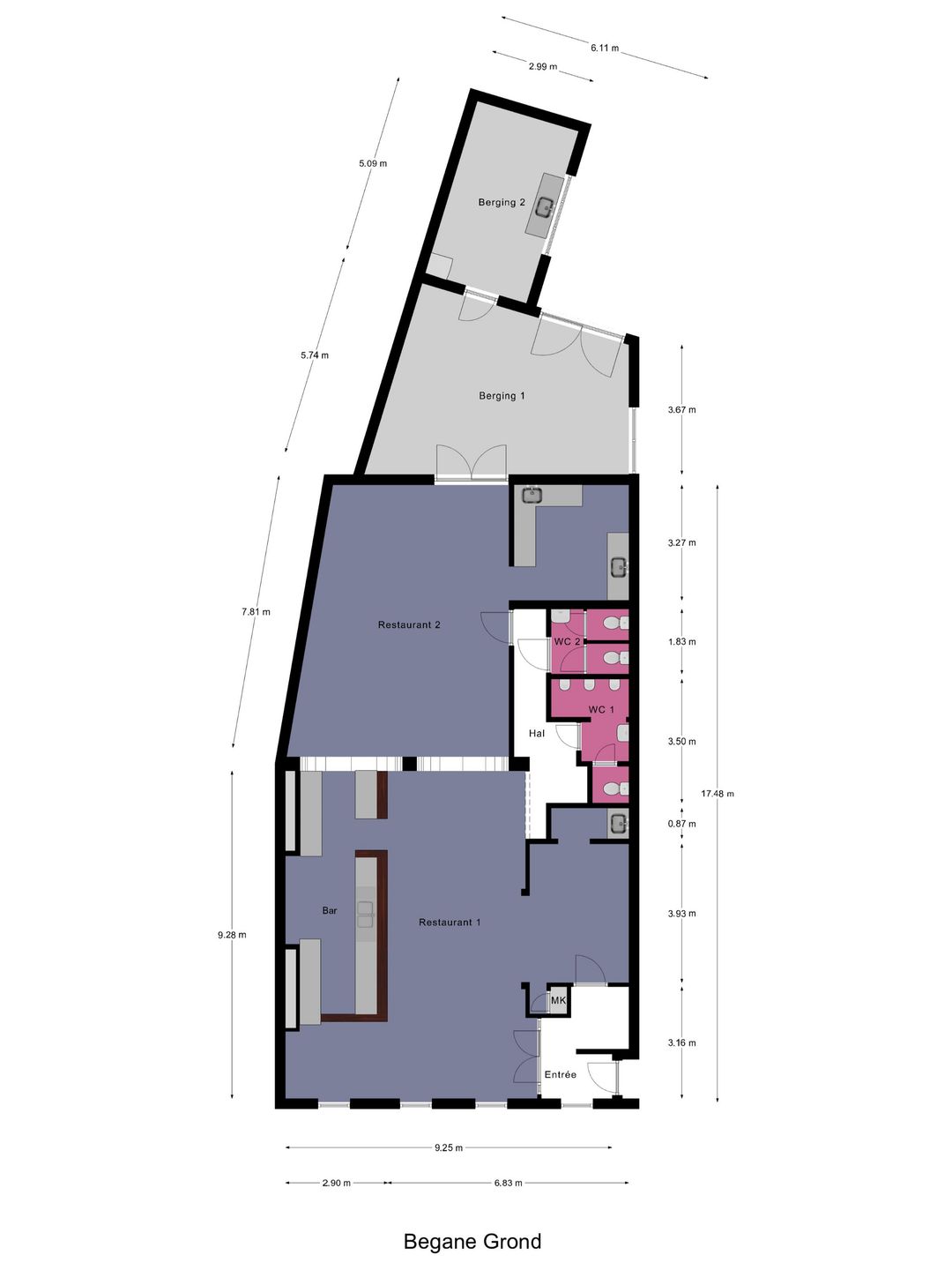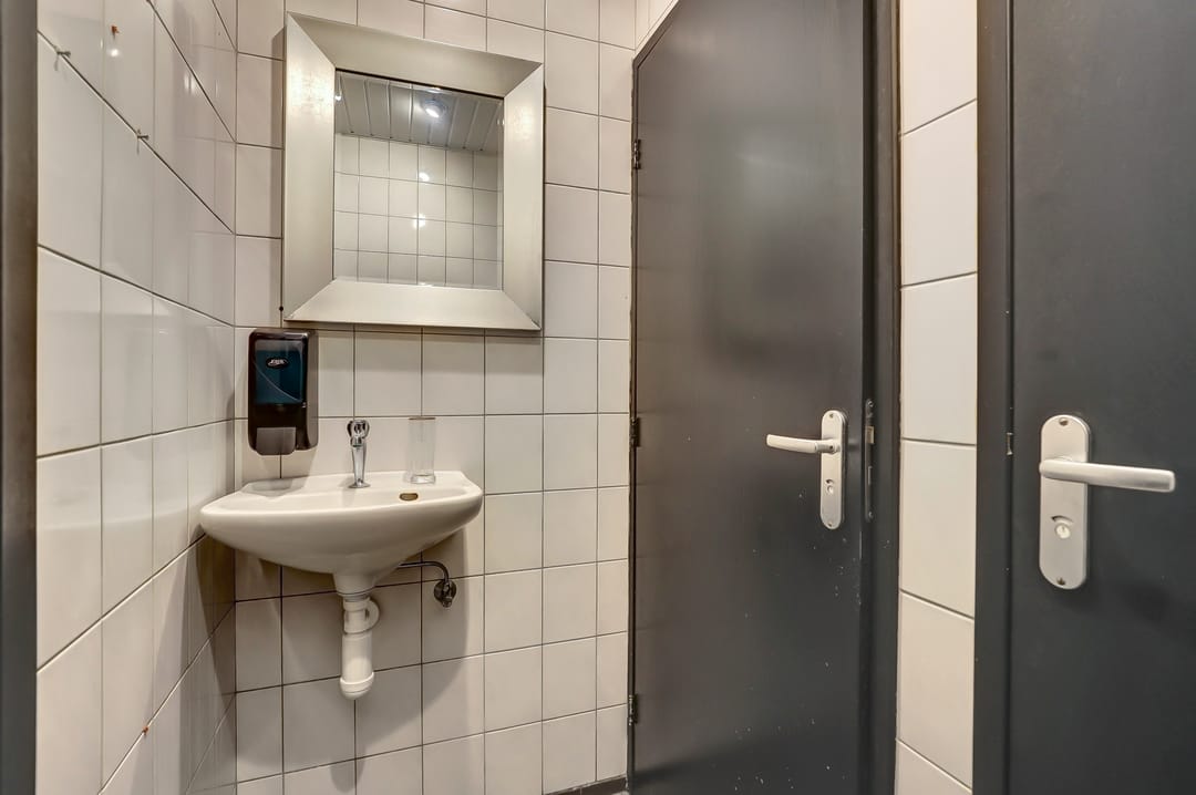 Daarnaast beschikt het pand over een hal met toiletten (dames en heren gescheiden), een meterkast en meerdere bergingen, waarvan twee ruime opslagruimtes aan de achterzijde met eigen toegang. Deze bieden praktische mogelijkheden voor voorraad, kantoor of personeelsruimte.