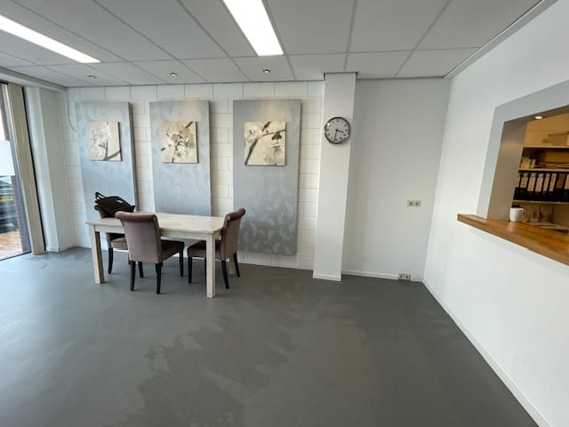 Dankzij de aanwezige verwarming en lichtstraten is de ruimte comfortabel en licht.
