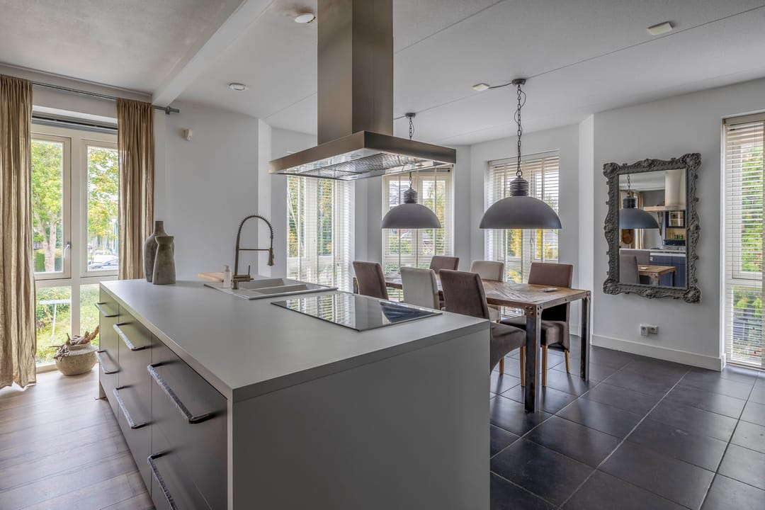 - woonkamer met openkeuken (elektrische kookplaat, vaarwasser, oven en koelkast)