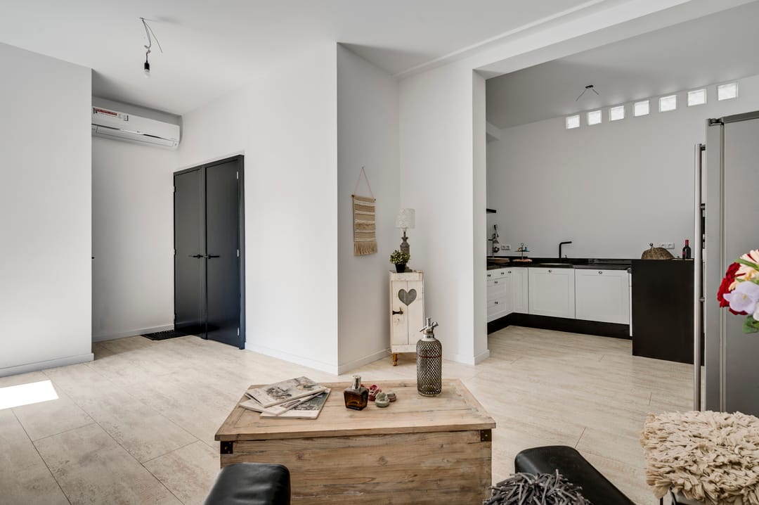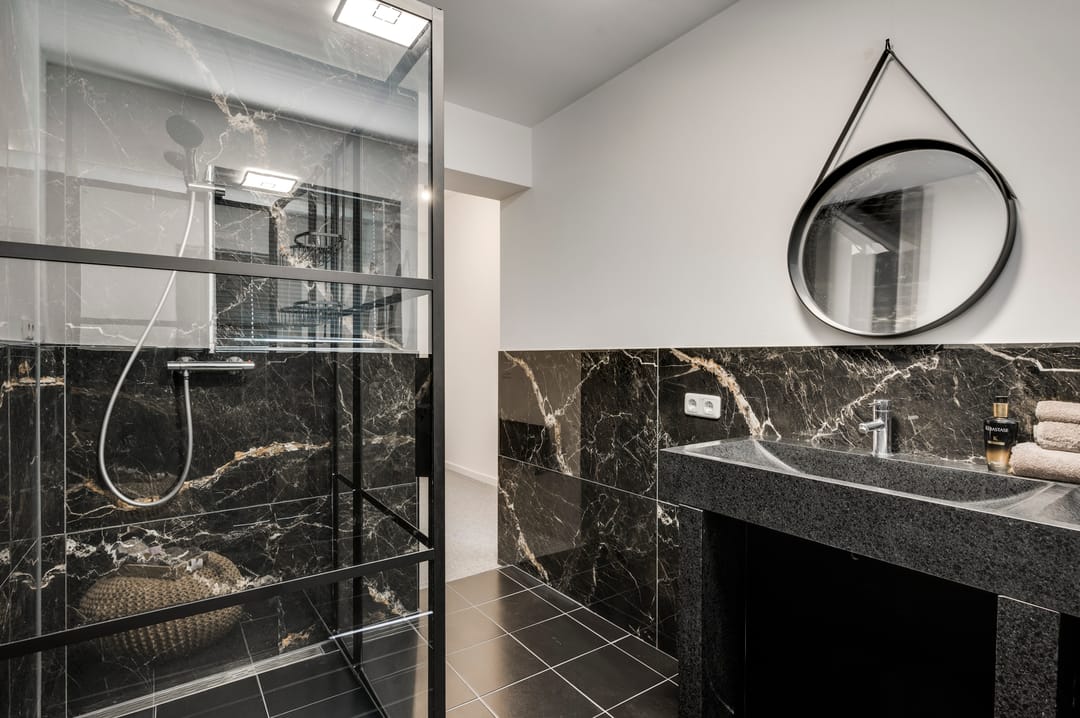 - Op de eerste verdieping vind je een knusse leefruimte met een tweede keuken en een tweede slaapkamer mét ensuite badkamer.