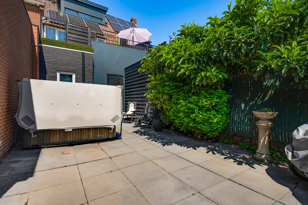 De woning beschikt over een knusse onderhoudsvriendelijke achtertuin met vrije achterom. Deze biedt je rust en privacy ondanks dat je midden in het centrum woont! Er zijn ook twee eigen parkeerplaatsen aan de achterzijde. Op de verdieping bevindt zich een dakterras met een mooi uitzicht over Nederweert.