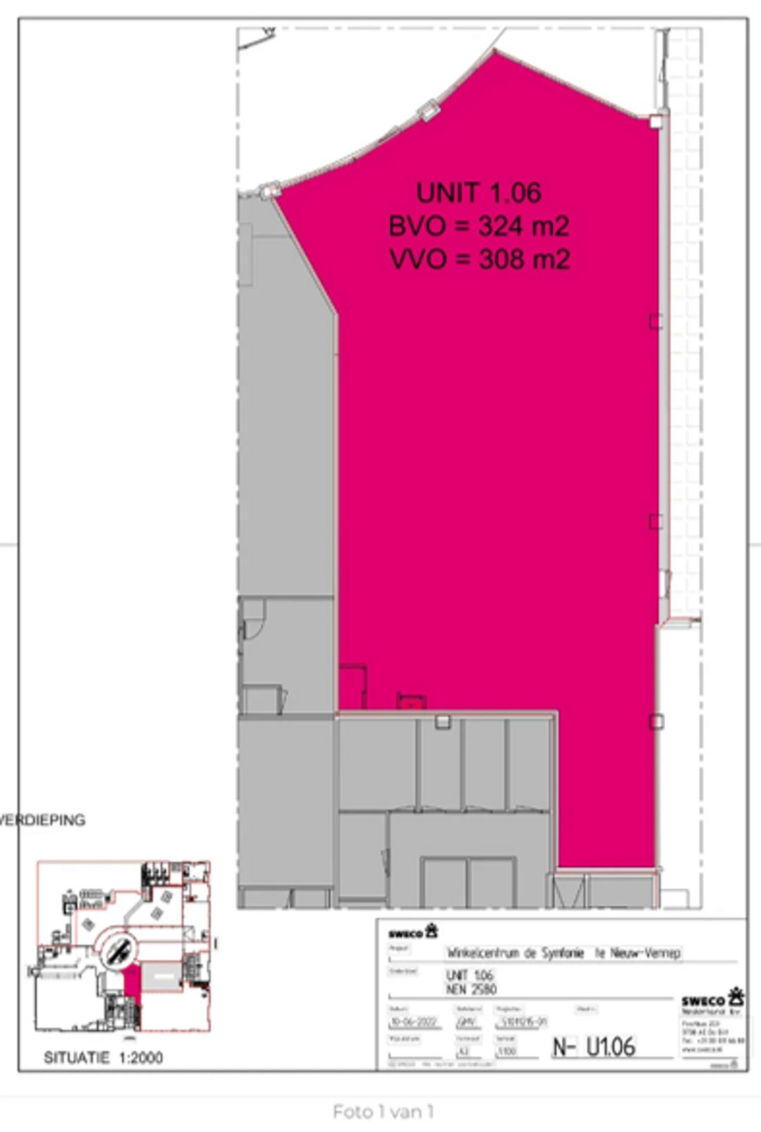 De representatieve winkelruimte bevindt zich op de 1e verdieping van het winkelcentrum nabij Supermarkt Dirk, Scapino en Action. De bruto oppervlakte van de winkelunit is circa 324m².