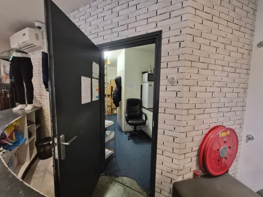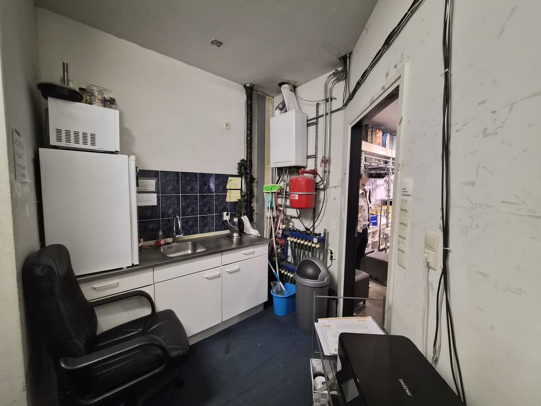 Entree direct in de winkel-/praktijkruimte, met toegang tot het magazijn met toilet en pantry. Totale oppervlakte circa 185 m² BVO.