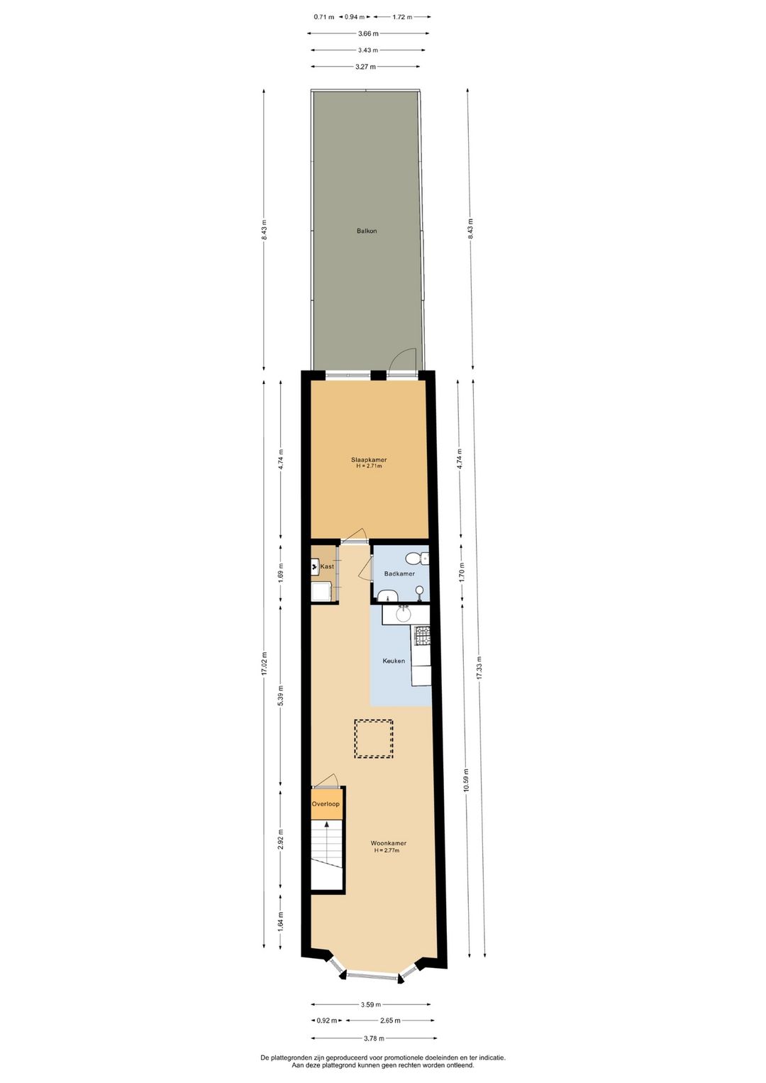 Het object is conform de Branche Brede Meetinstructie ingemeten. De Meetinstructie sluit verschillen in meetuitkomsten niet volledig uit, door bijvoorbeeld interpretatieverschillen, afrondingen of beperkingen bij het uitvoeren van de meting. Echter, afwijkingen of interpretatieverschillen vormen geen aanleiding tot verrekening.