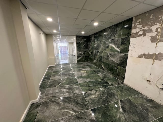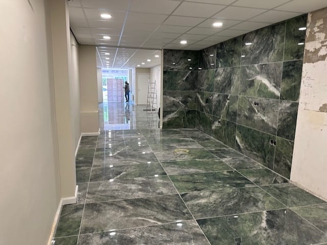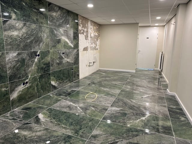 - steenachtige vloer v.v. vloertegels;