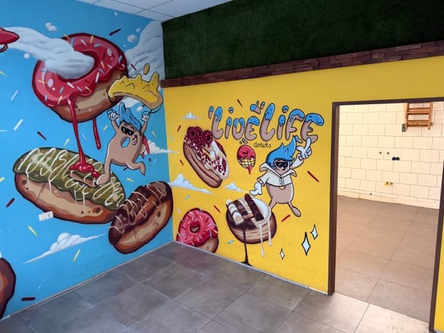 De winkel bestaat uit 2 ruimten op de begane grond en opslagruimte in de kelder.