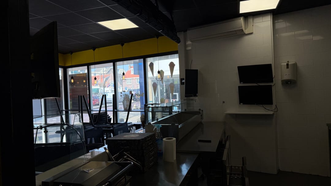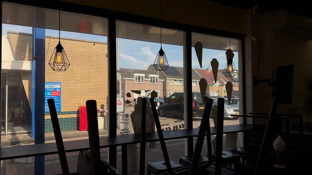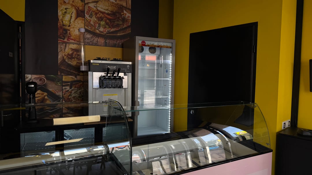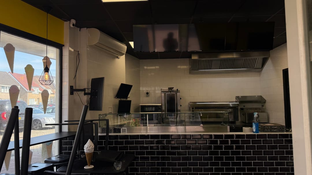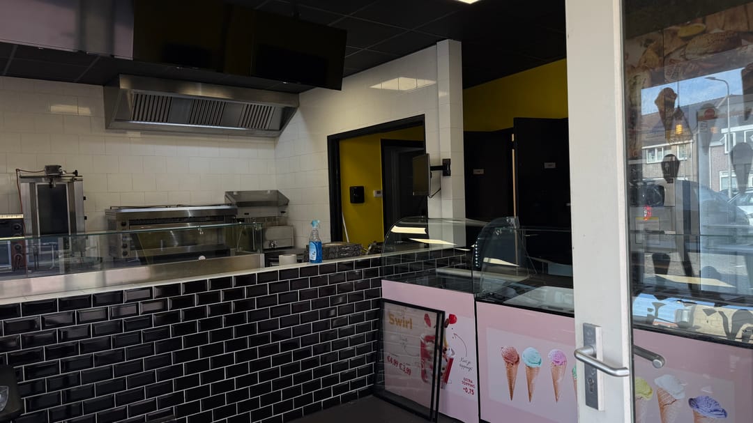 - Verkoopruimte voorzien van toonbank, vitrine, koel-/vrieskasten en zitmogelijkheid