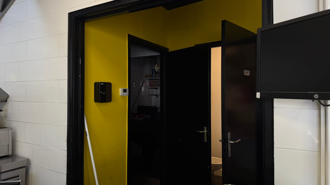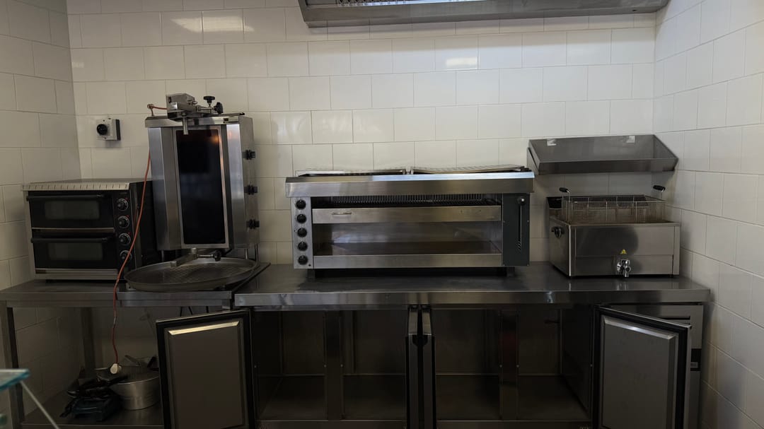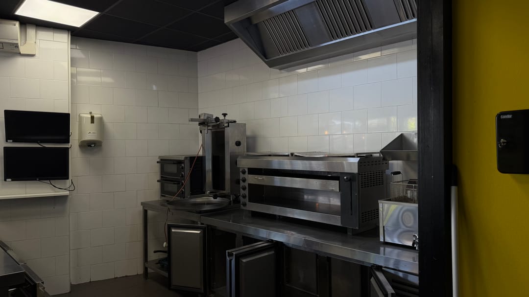 - Keuken/werkruimte volledig ingericht met professionele apparatuur (o.a. ovens, bakplaten, afzuiginstallatie, koelwerkbanken)