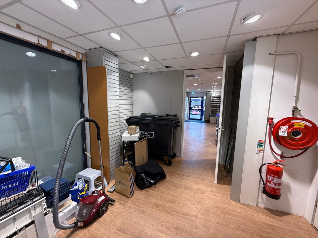 Winkelruimte met opslag of kantoor.