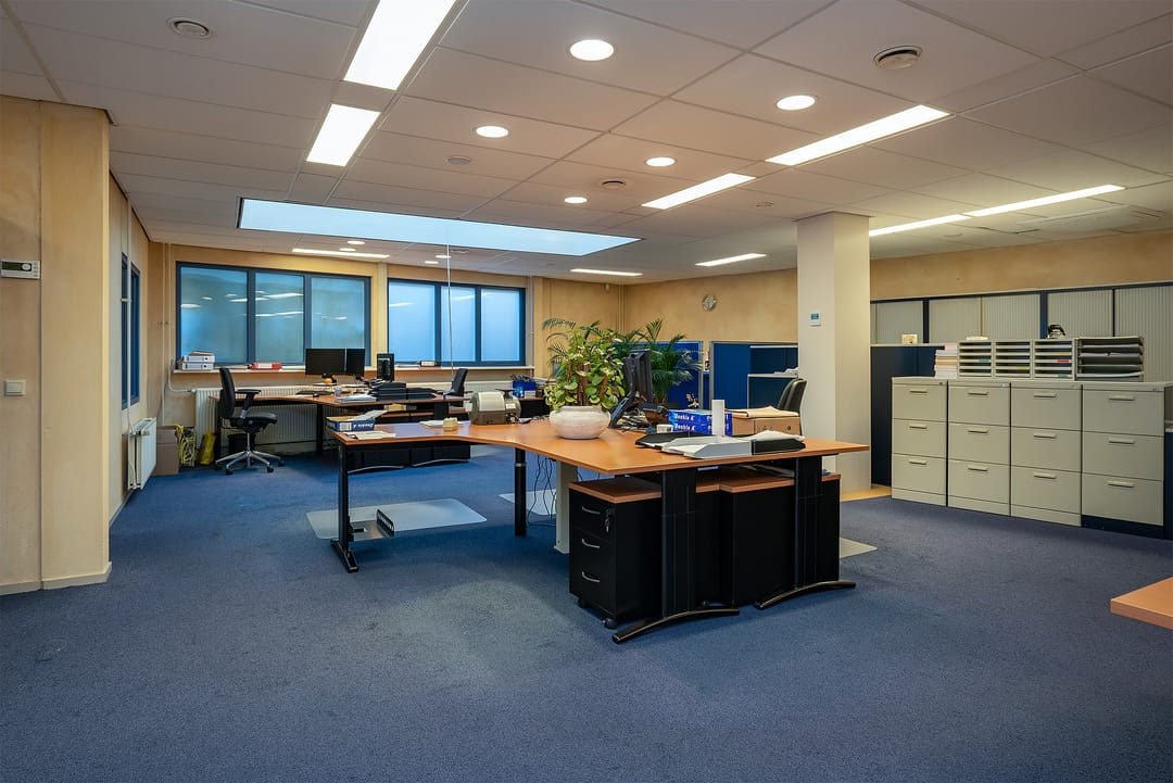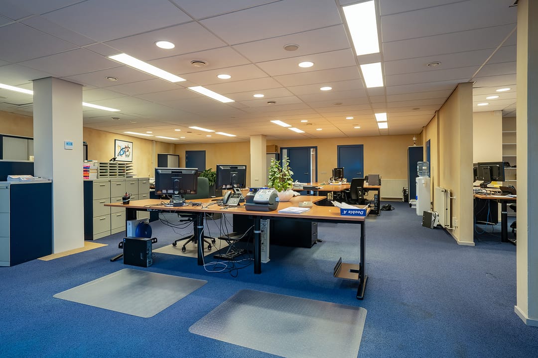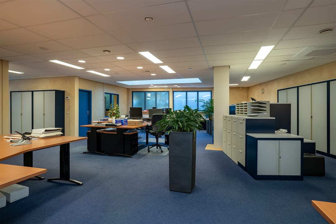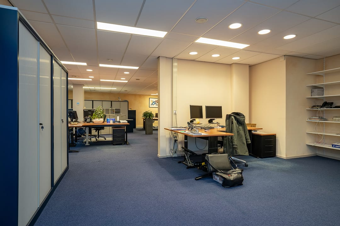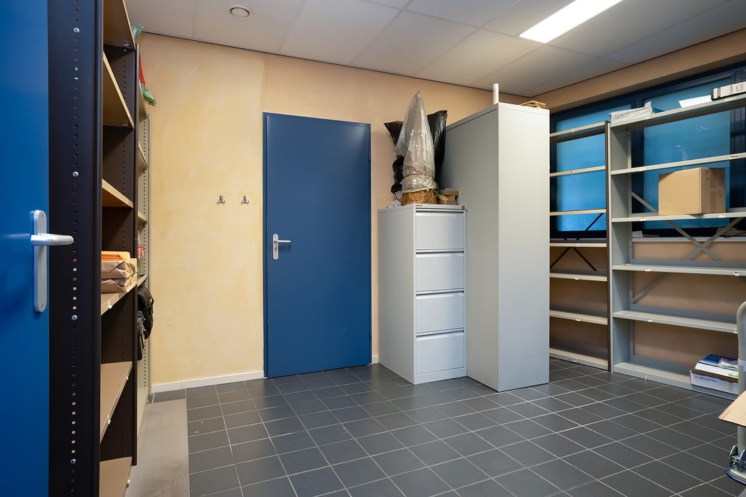 Met separate keuken voorzien van pantry en aansluiting vaatwasser, serverruimte/ patchkast met airco, werkkast met uitstortgootsteen, archiefkamer, cv-ruimte met opstelling cv-ketel en opstelling WTW-installatie. De kantoorruimte is tevens voorzien van een, te openen, lichtstraat.