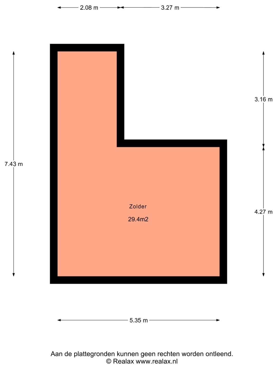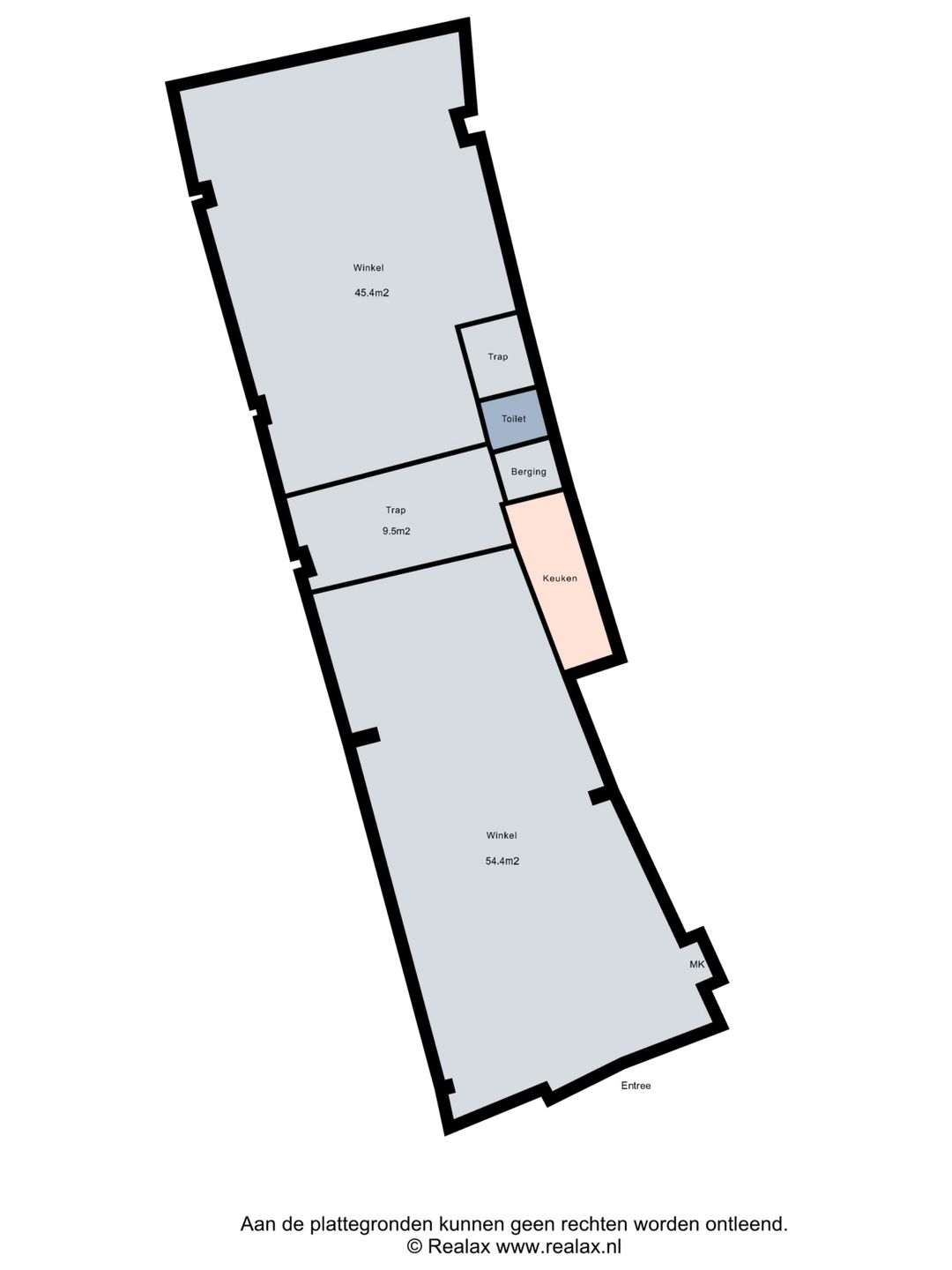 De oppervlakten zijn gemeten door verhurend makelaar uit een kopie bouwtekening. Het opgegeven metrage is derhalve indicatief; er kunnen geen rechten aan worden ontleend noch kan er sprake zijn van enige verrekening achteraf.