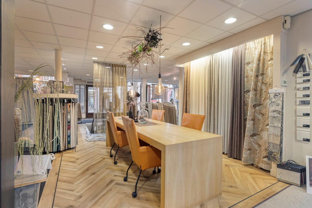 What distinguishes this property is the exceptionally wide frontage of no less than approximately 13.7 meters. This impressive facade width offers maximum visibility and excellent display window possibilities. This gives your business a powerful and professional appearance, ensuring your presentation stands out immediately in the street. Whether you choose a spacious window display arrangement or multiple display surfaces, this width gives your concept the room to shine.