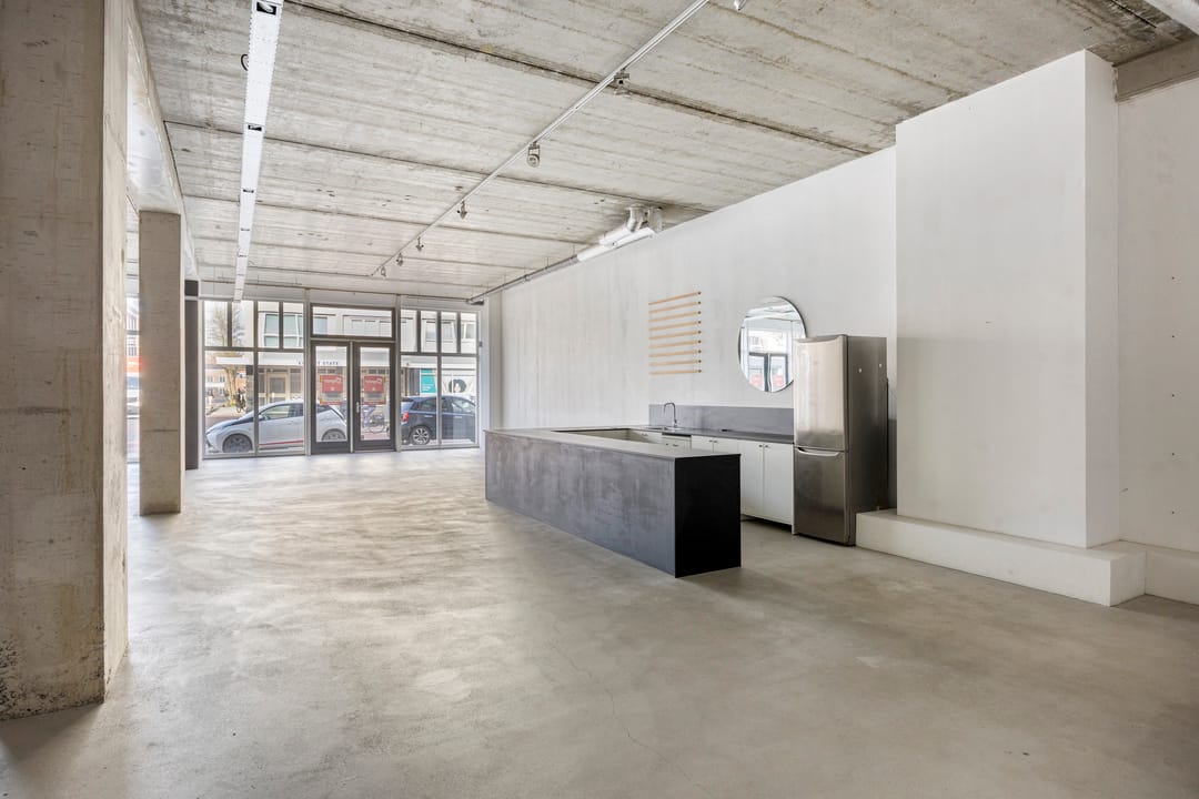 De ruimte is modern afgewerkt en voorzien van een dubbele entree, waardoor deze flexibel te gebruiken is voor verschillende concepten. Binnen treft u een centrale ‘open keuken’, een pantry, een separate toiletruimte, een keurige toiletgroep en een magazijn/opslagruimte. Daarnaast is het pand volledig voorzien van vloerverwarming en opbouwspots op rail aan het plafond, wat, samen met 'hoge plafonds', bijdraagt aan een comfortabele en professionele uitstraling.