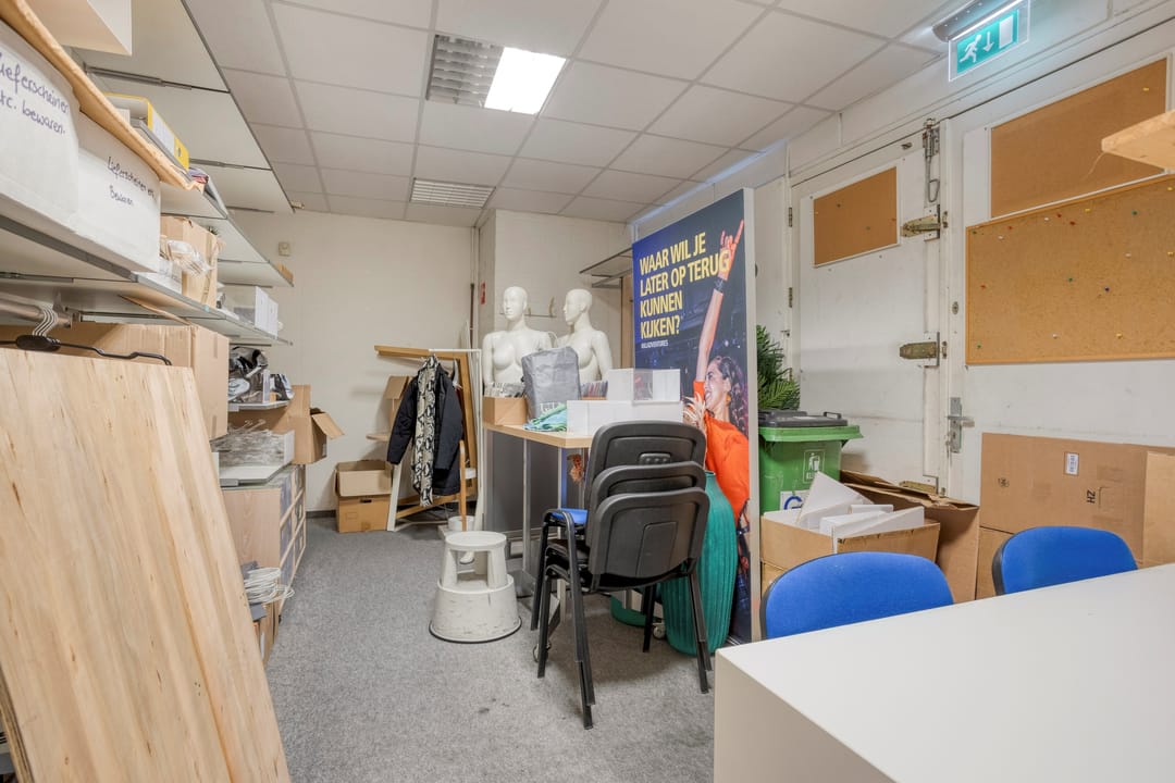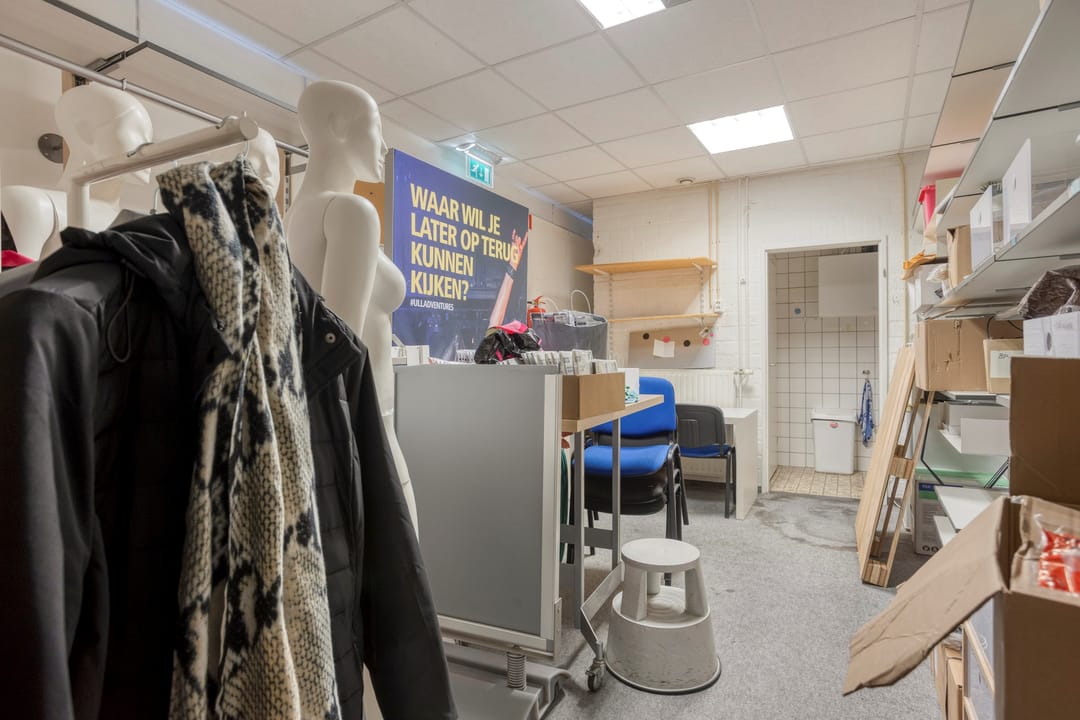 - Magazijnruimte met nooduitgang aan de achterzijde