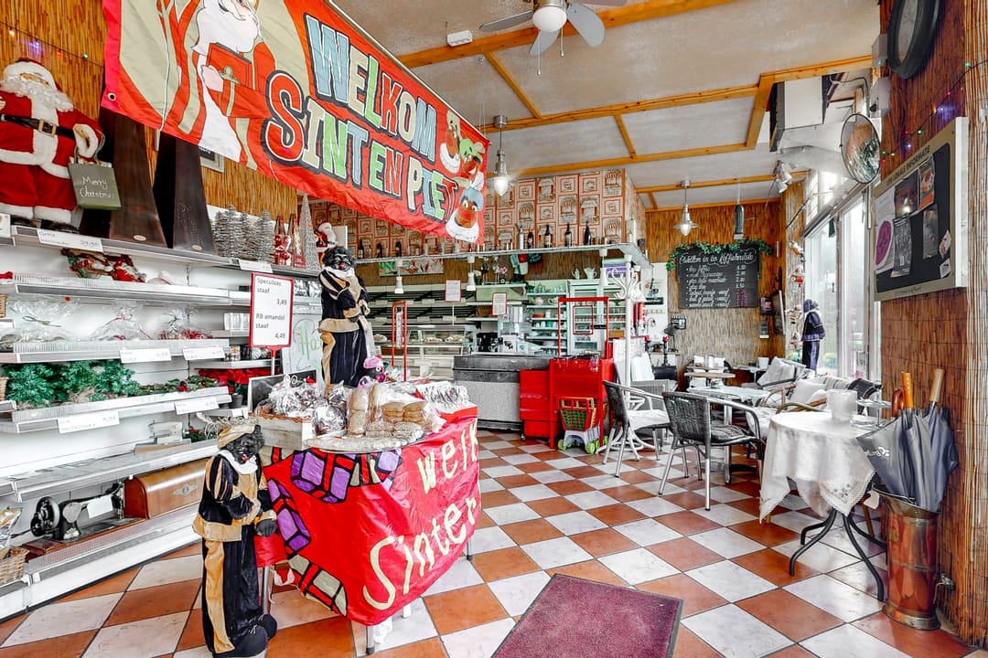 Op de begane grond bevindt zich een grote winkelruimte met achterliggende voorraadruimte/magazijn en een koelcel. De winkelruimte beschikt over een grote toonbank met vitrine en een keukenblok. De winkelruimte is ca. 100 m². De opslagruimte is ca. 33 m². Tevens bevindt zich een toilet in de opslagruimte. Ook bevindt zich nog een kantoorruimte op de begane grond. Deze is ca. 9 m² groot.