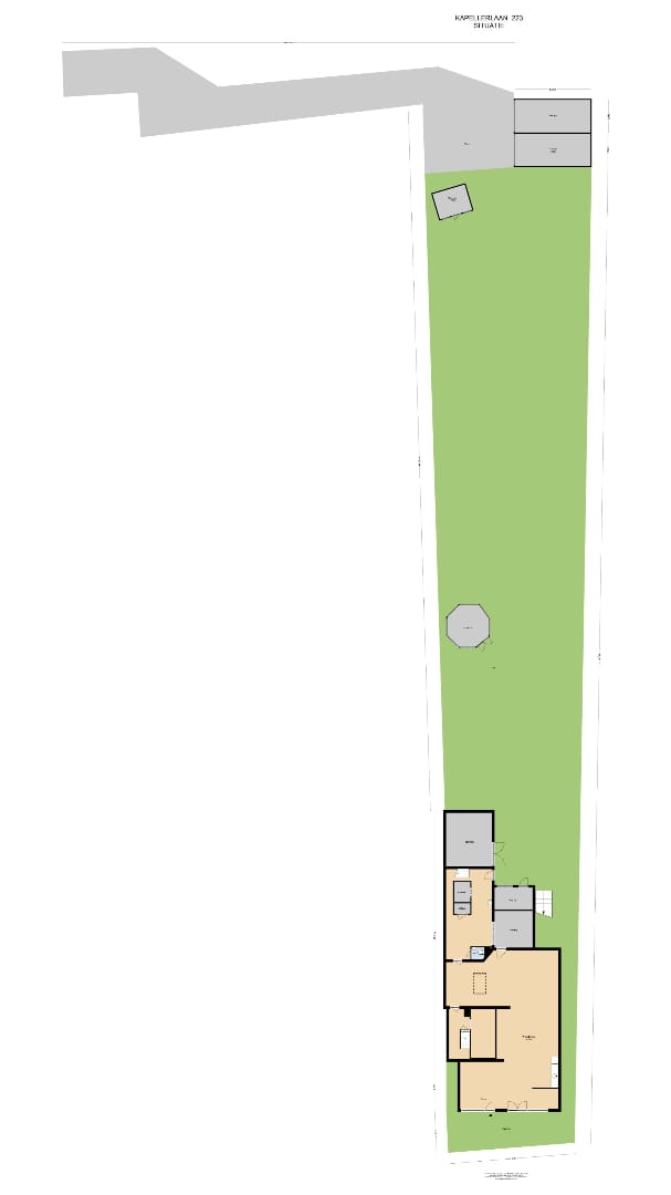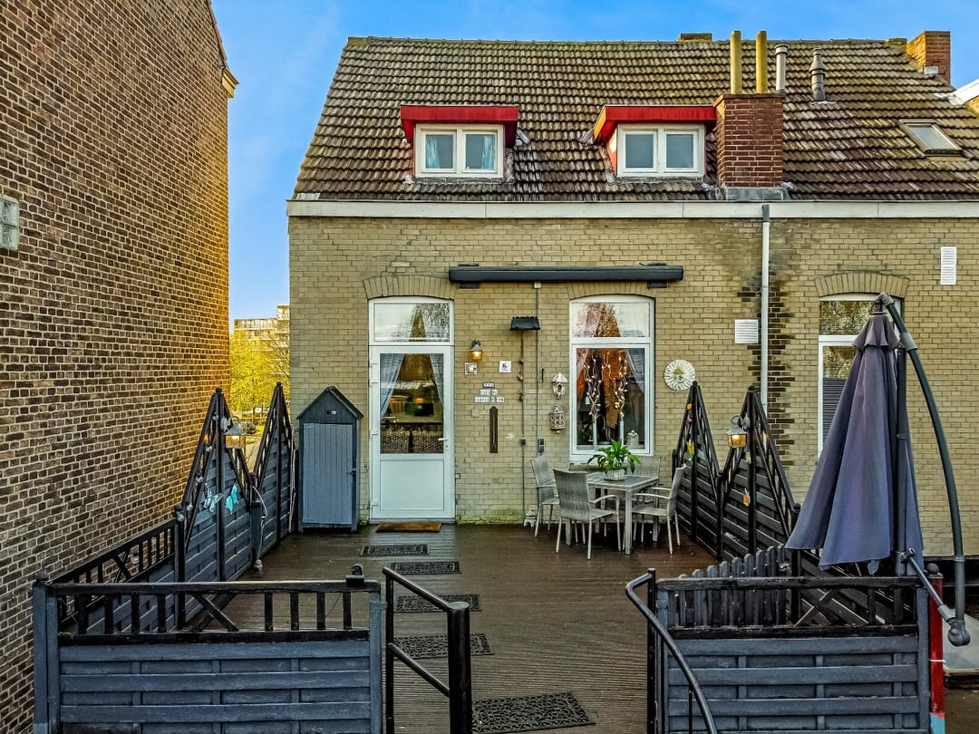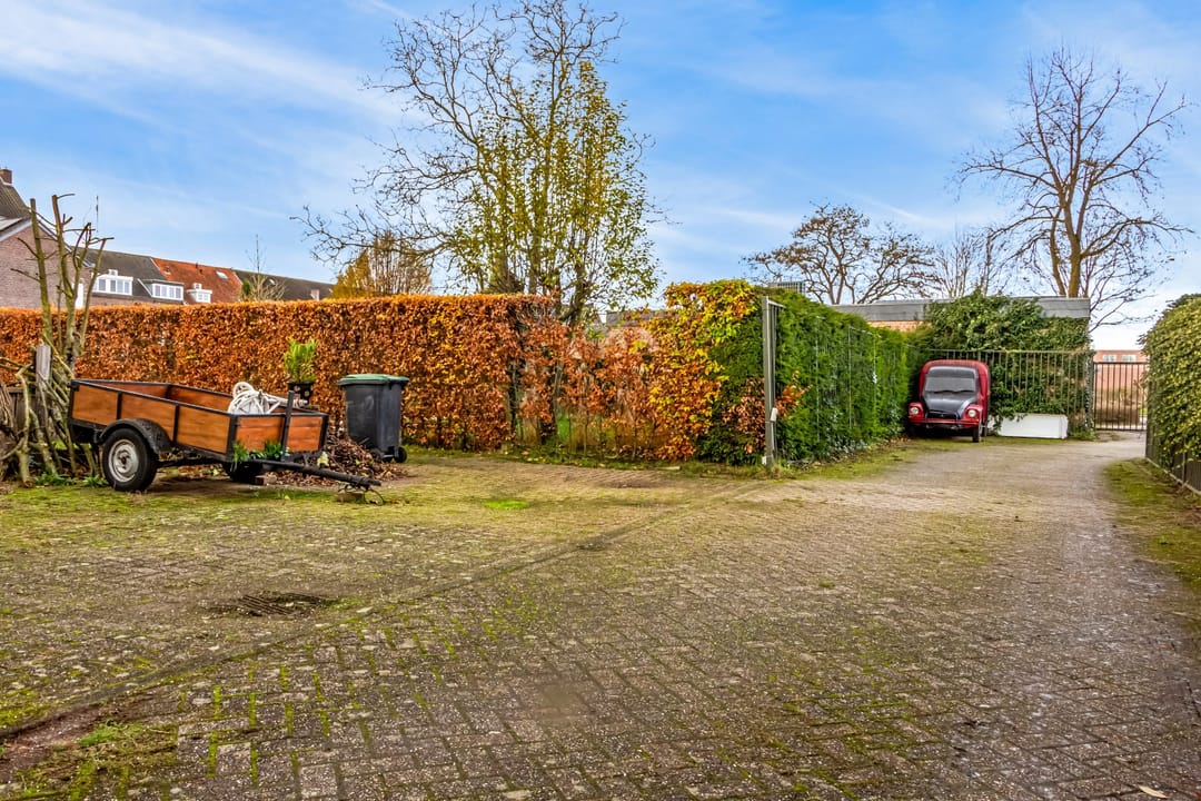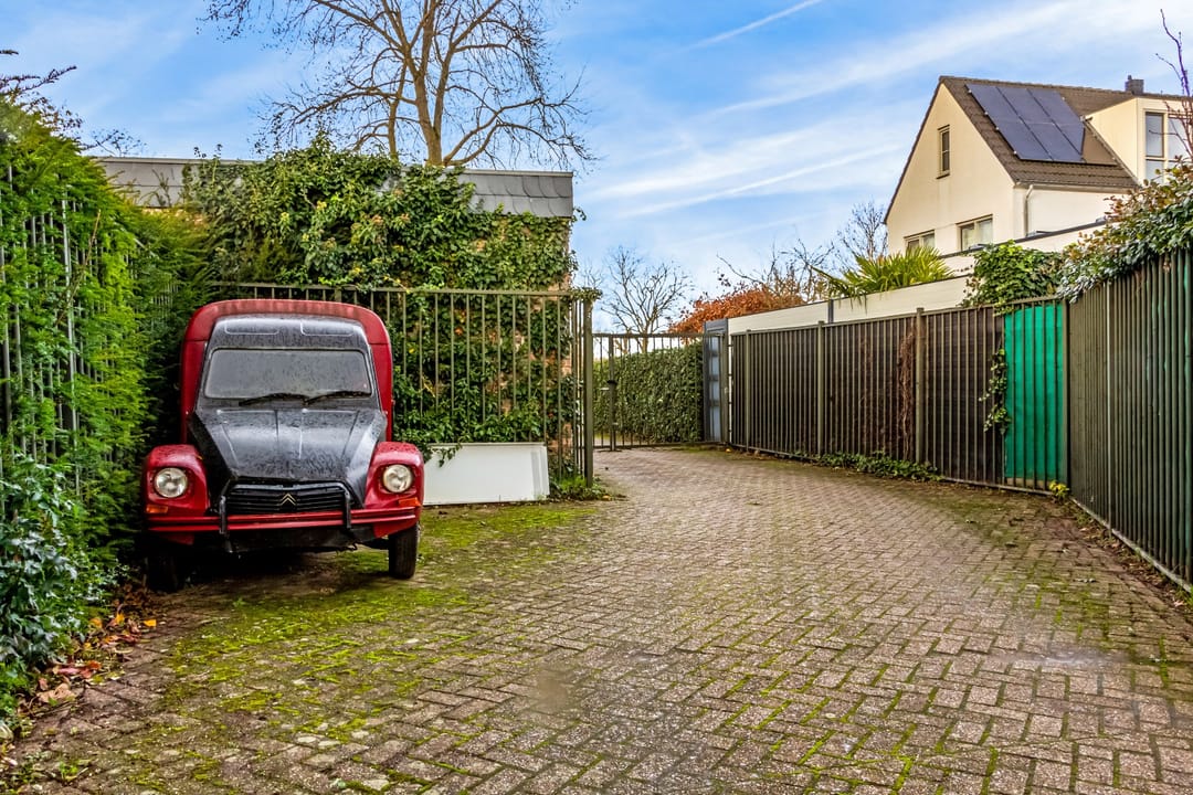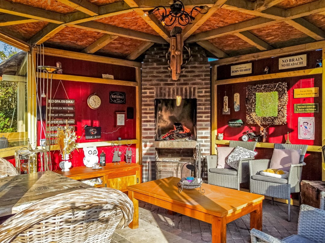 De riante achtertuin is vanuit de opslagruimte toegankelijk en tevens vanuit de zijkant en achterzijde van het pand via een eigen weg. De tuin is ruim en als je groene vingers hebt, dan kun je hier uren in vertoeven. Ook voor kinderen is deze tuin ideaal! Genoeg ruimte om te spelen! Voor in de tuin ligt een theehuis met open haard waar je gezellig kunt zitten met familie of vrienden onder het genot van een hapje en drankje. Achterin de tuin bevindt zich een tuinhuis, waar de fietsen gestald kunnen worden of je tuingereedschap in opgeborgen kan worden. Aan de achterzijde liggen twee grote garages waar voldoende ruimte is om diverse (grote) voertuigen in te stallen. Deze zijn bereikbaar via een afgesloten eigen weg.